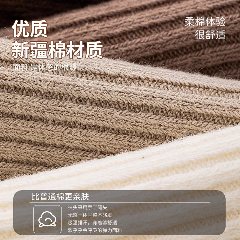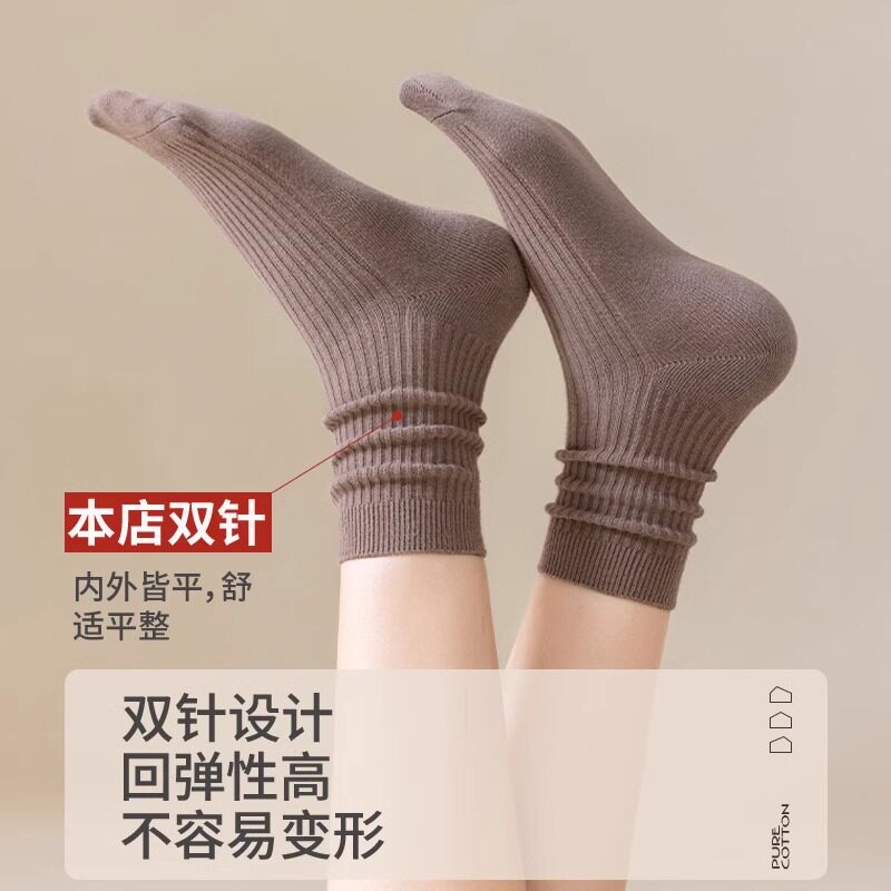 新疆棉袜子女2025新款爆款秋冬季中筒袜运动防臭纯色棉袜女士长袜