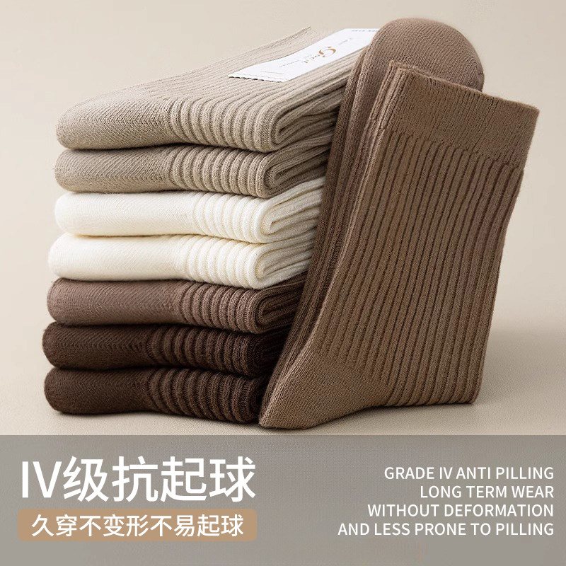 男士袜子商务抗菌中筒袜秋冬运动吸汗防臭经典黑白灰纯色中筒袜子