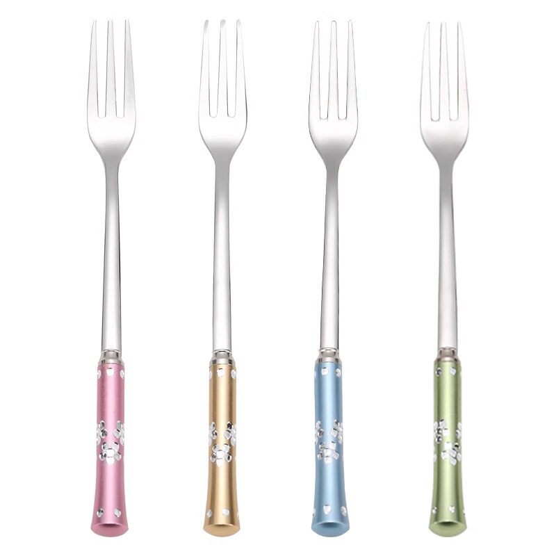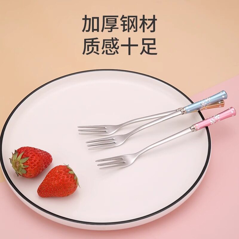水果叉子家用高档精致304不锈钢果叉可爱甜品叉蛋糕叉彩钻水果签