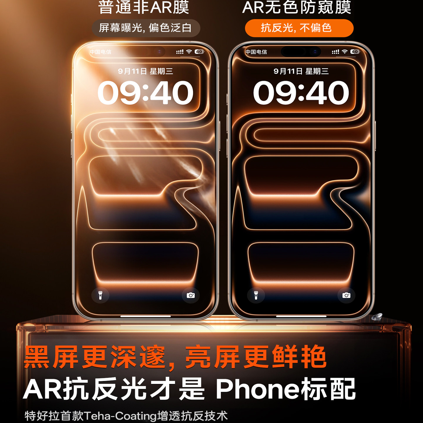 【美国康宁360°无色防窥】特好拉适用苹果17ProMax钢化膜防偷窥新款iPhoneAir手机贴膜17pro高清16/15保护膜
