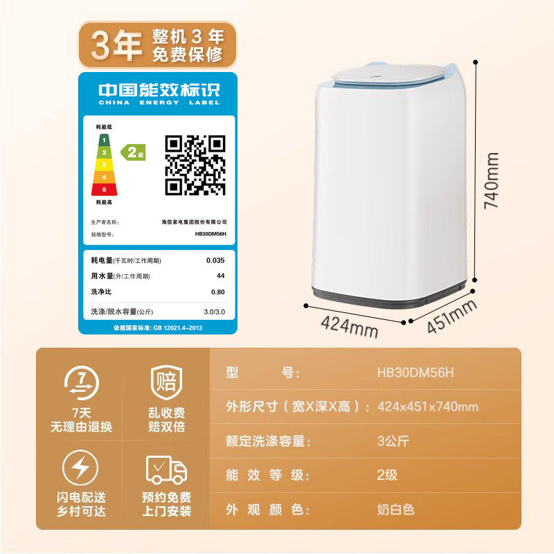 【新品】海信3kg迷你洗衣机全自动波轮家用婴儿宝宝儿童除菌56H