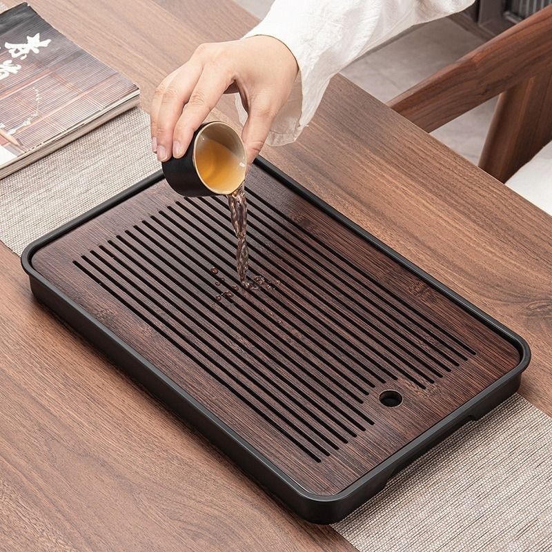 茶盘家用小型沥水盘功夫茶具竹制茶海茶杯收纳盘干泡盘储水办公室