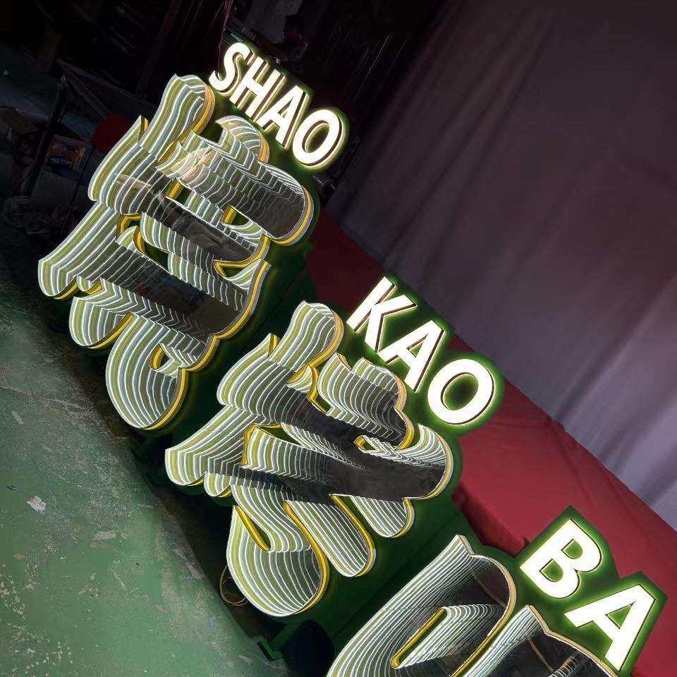 深渊镜户外景观字霓虹灯立体落地字炫彩发光字门头招牌千层镜