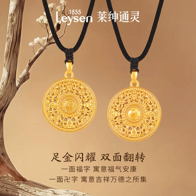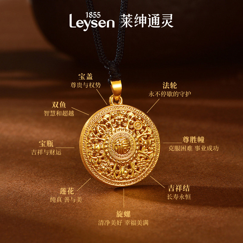 【计价金】莱绅通灵梵光系列 万福 八宝罗盘足金黄金吊坠