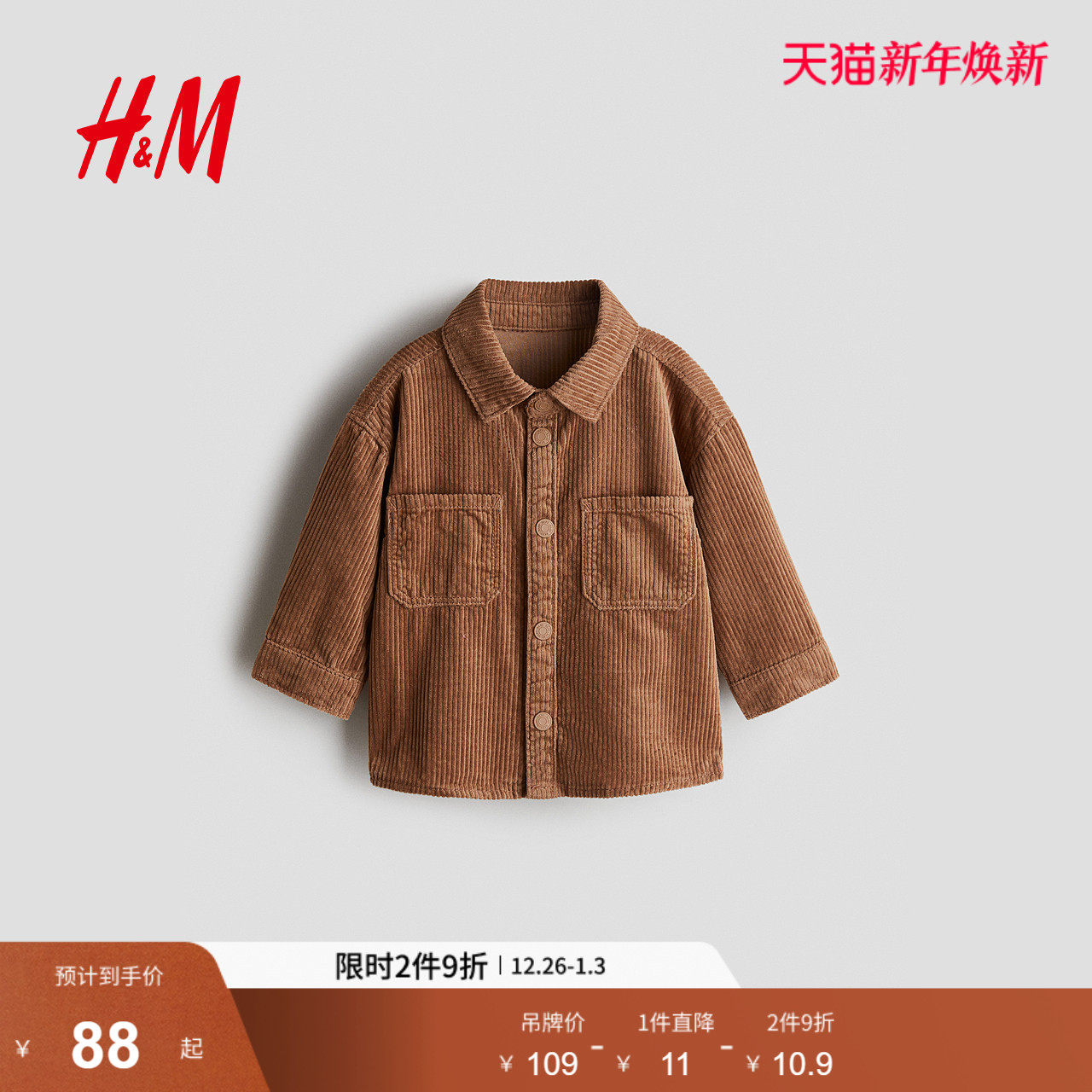 HM童装男婴衬衫2025冬季新款棉质灯芯绒内搭巴恩风衬衣1242563