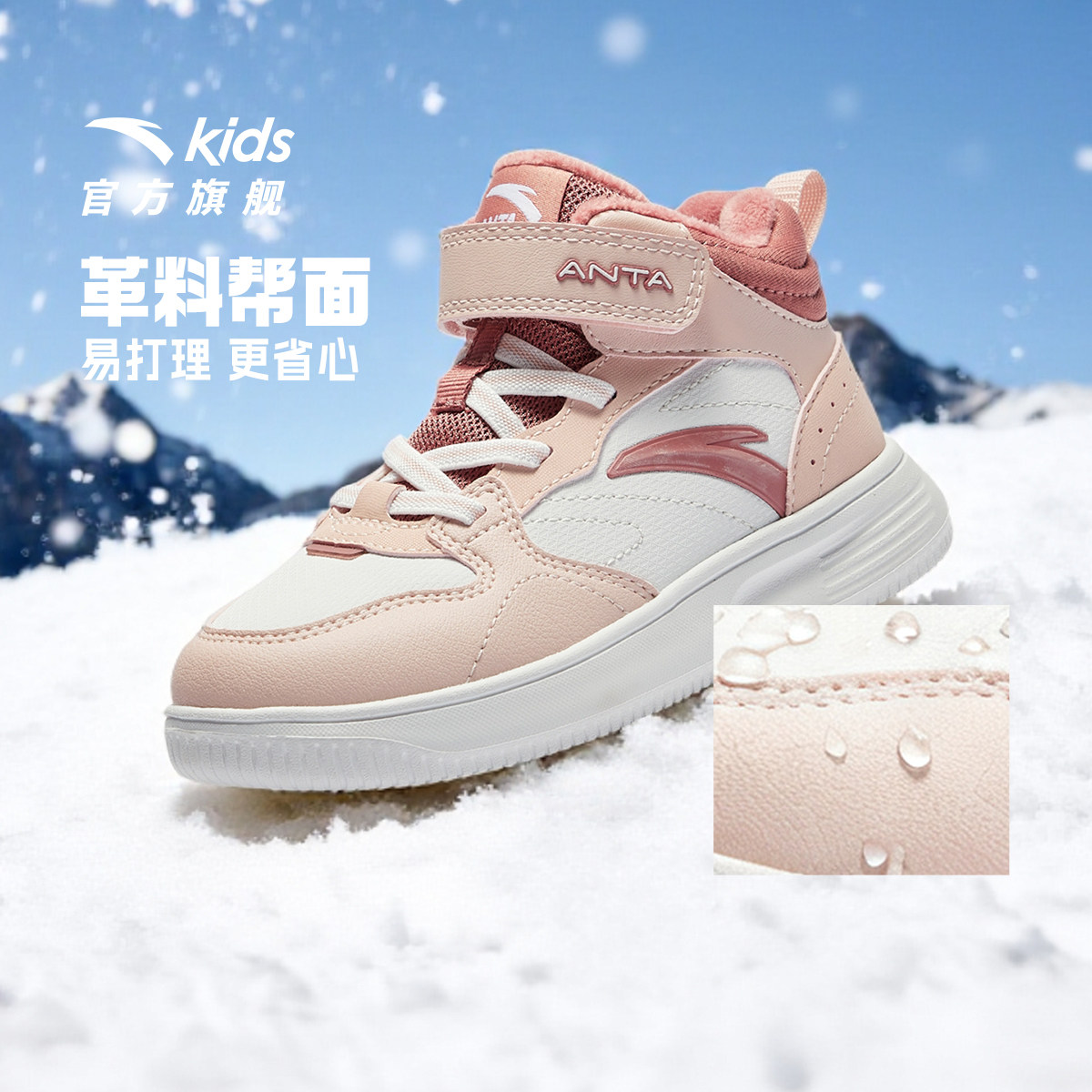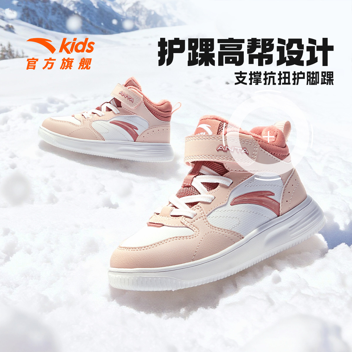 安踏儿童女小童棉鞋童鞋2025冬新款保暖防滑女孩运动加绒高帮板鞋