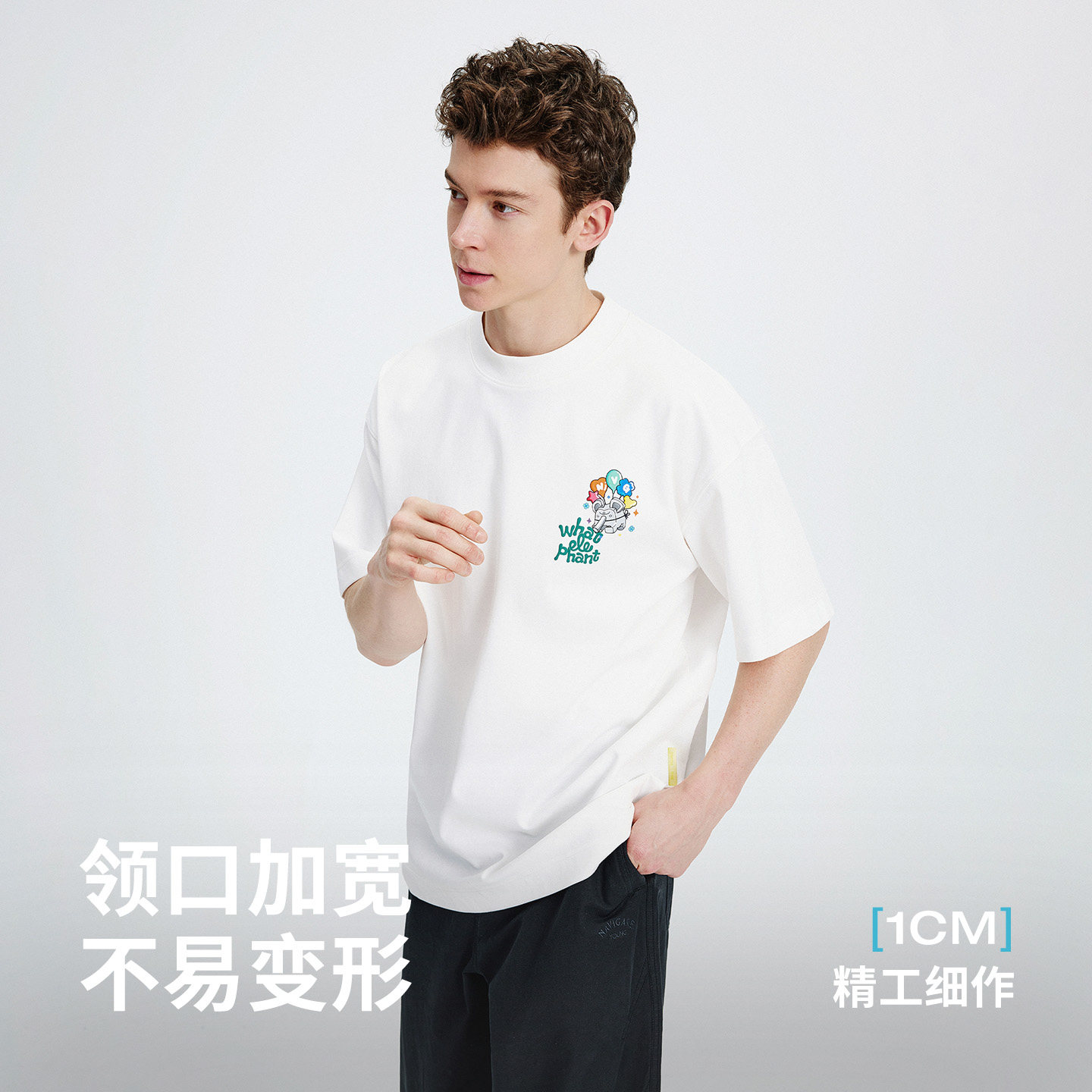 森马短袖T恤男纯棉打底衫修身长袖25夏季新款纯色内搭上衣简约白