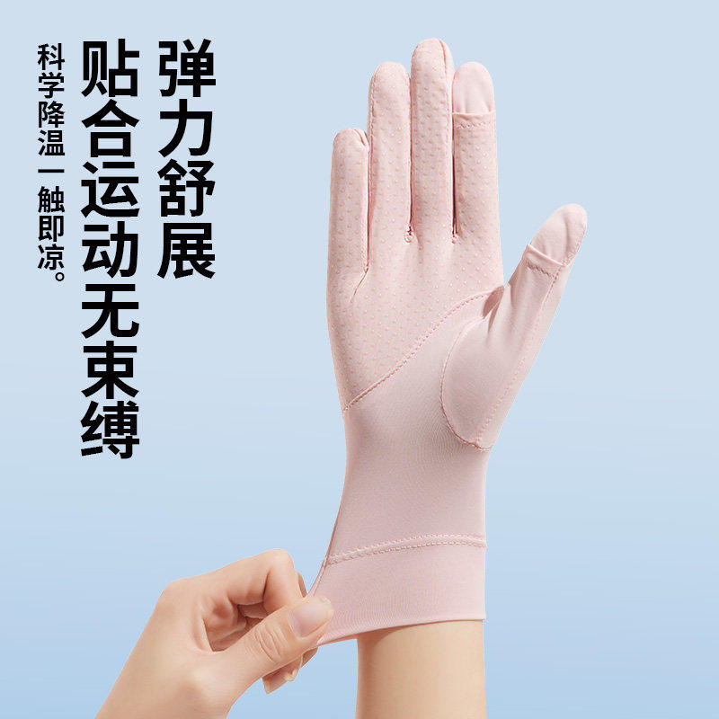 防晒手套女士夏季防紫外线凉感冰丝防滑露指户外骑行开车骑车透气