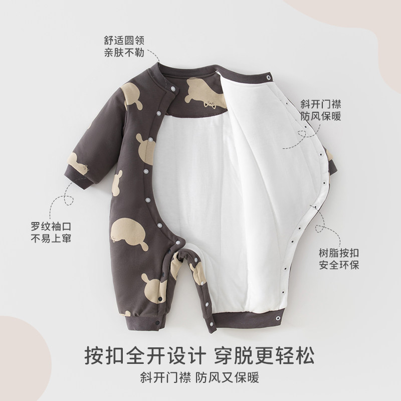 贝肽斯婴儿薄夹棉连体衣冬装外出新生幼儿宝宝衣服保暖空气棉睡衣