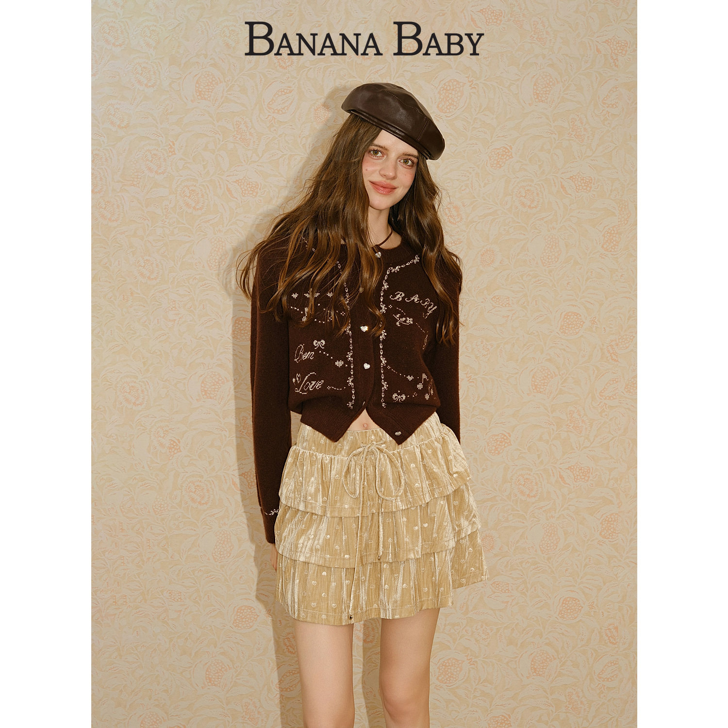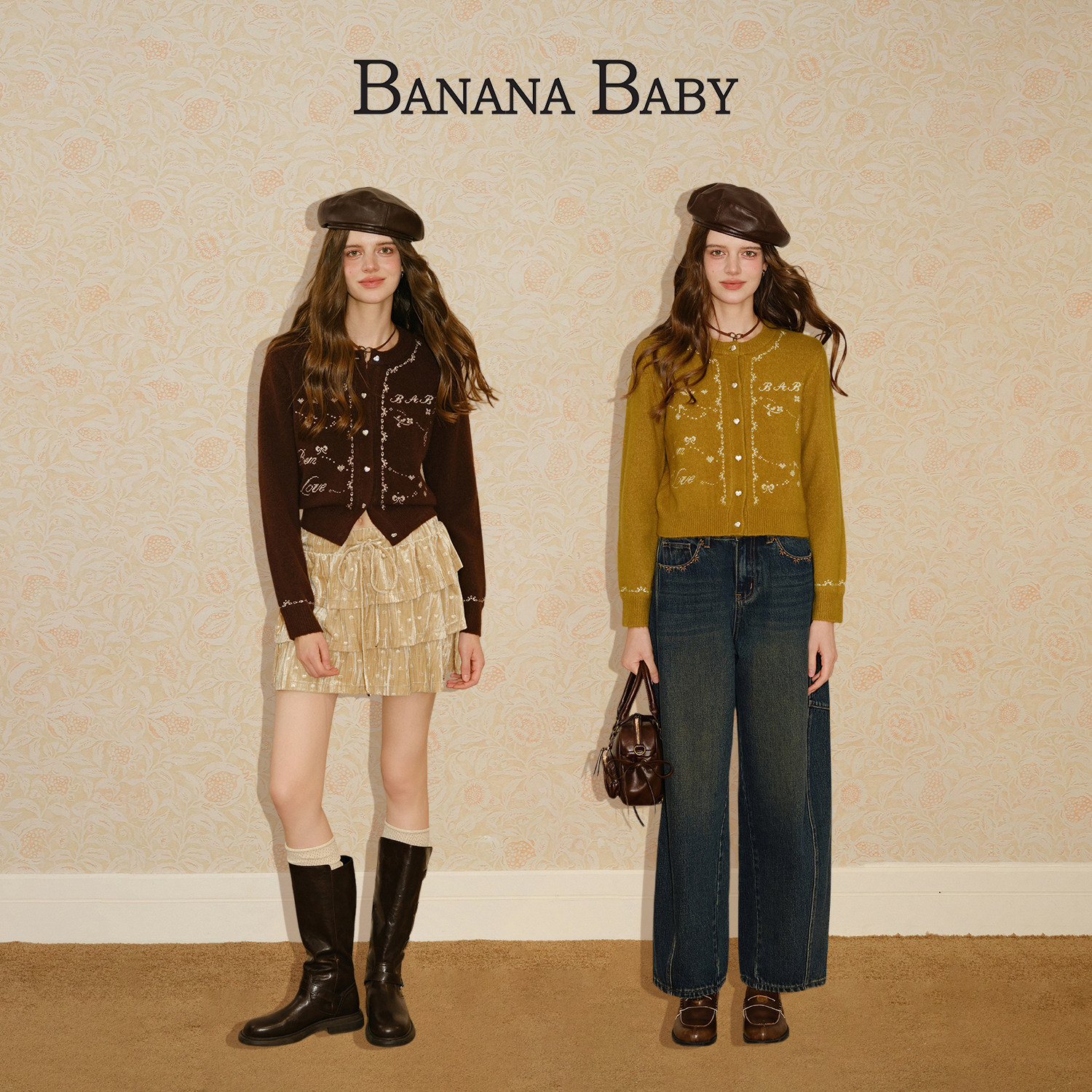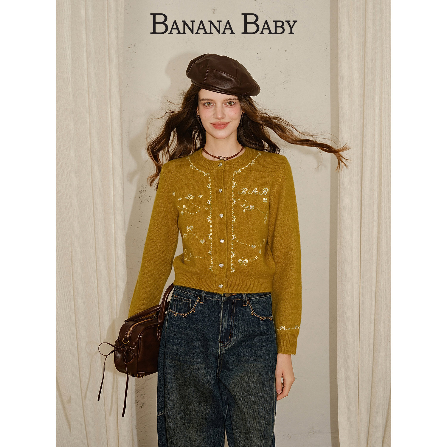 【张小婉 孙雪宁同款】BANANA BABY2025年冬新款绵羊毛刺绣针织衫
