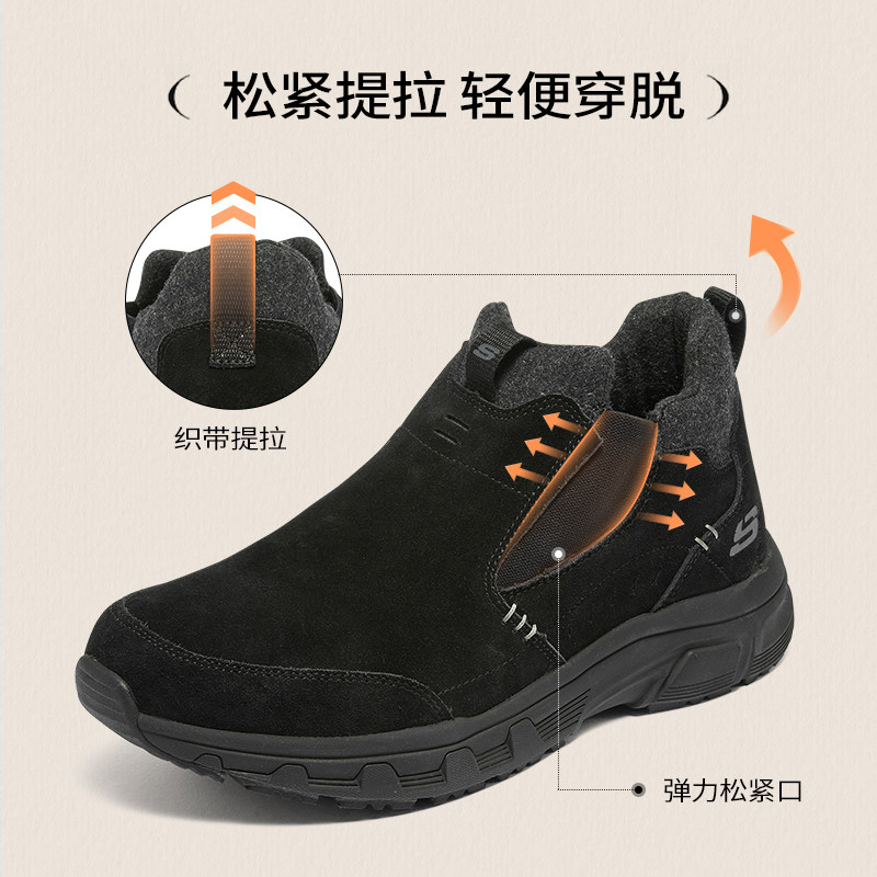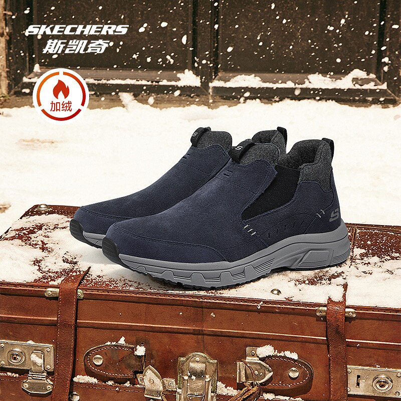 斯凯奇官方outlets男鞋一脚蹬鞋加绒保暖加厚健步鞋爸爸鞋反毛皮