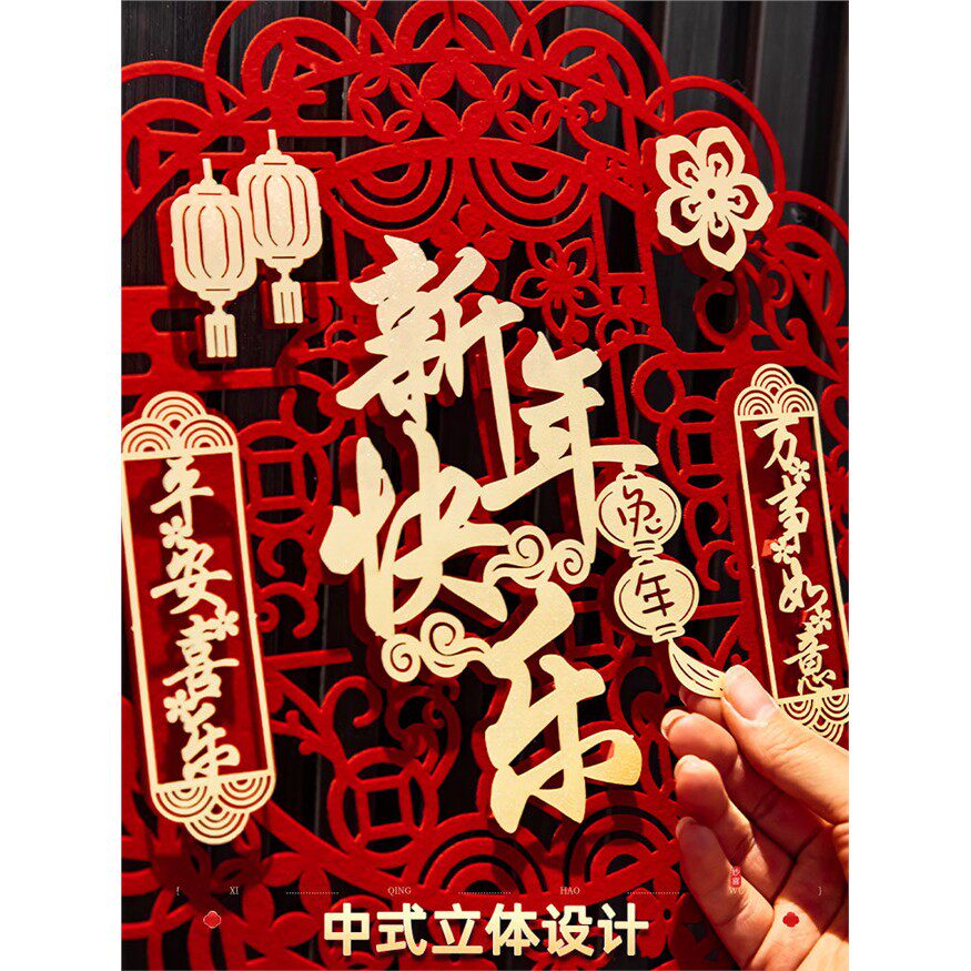 新年装饰品氛围布置家里客厅背景墙拍照场景春节贺卡2026马年墙贴