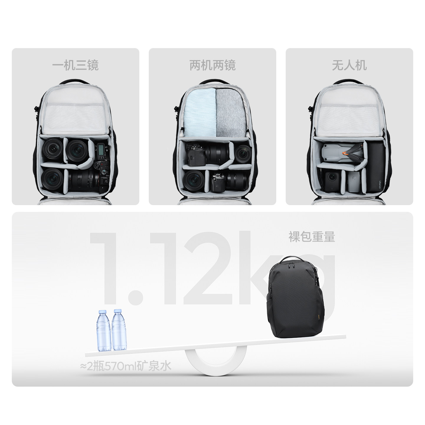 Ulanzi优篮子 YY038城市旅行双肩背包V2大容量22L户外登山旅行轻便摄影保护包稳定器专业器材数码收纳相机包