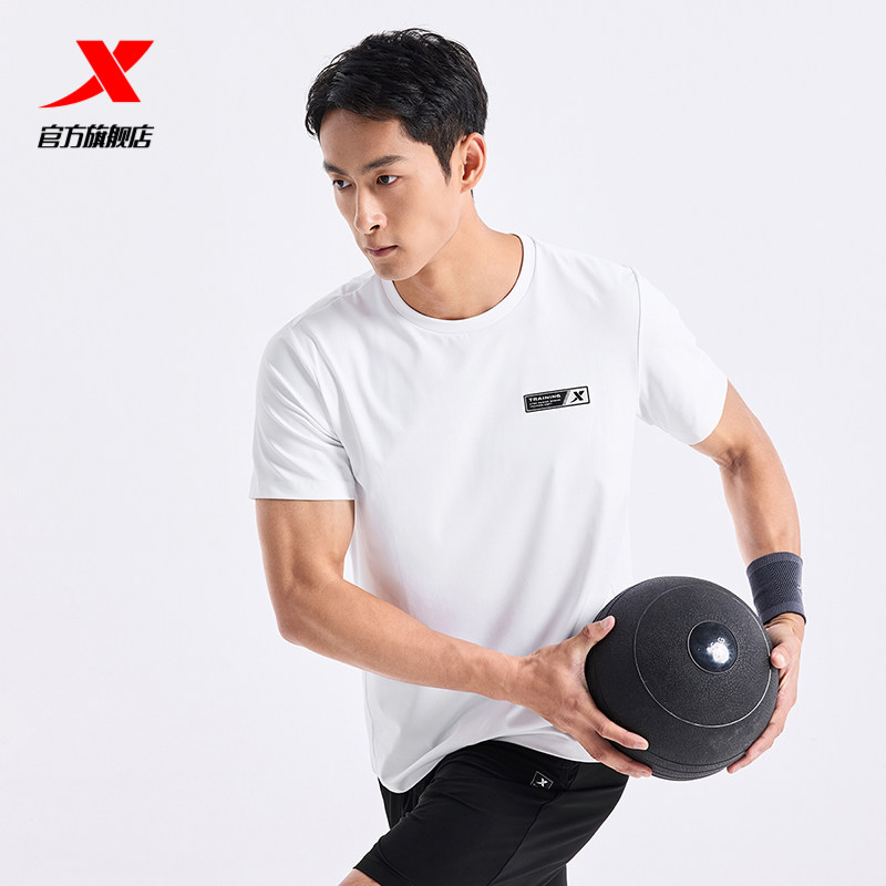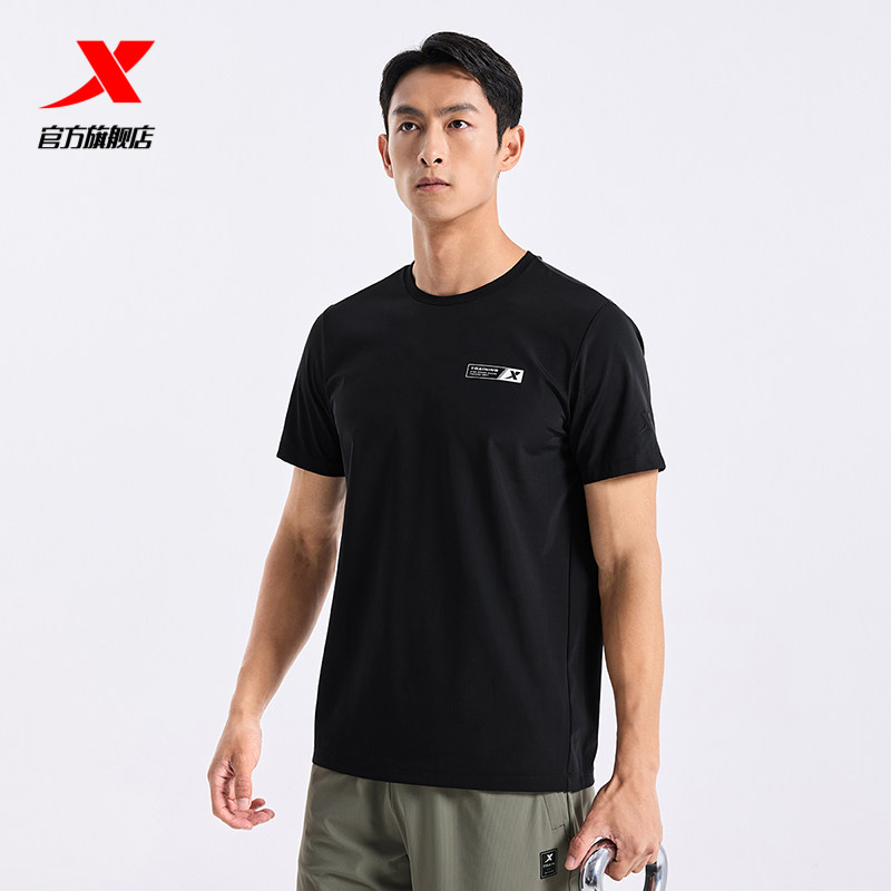特步短袖T恤男士新款夏季官方训练跑步体恤健身圆领半袖运动上衣
