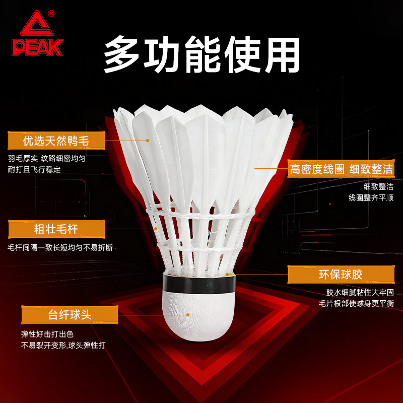 PEAK/匹克羽毛球耐用正品12不易比赛专业训练用球耐打鸭毛稳定