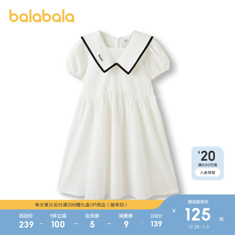 巴拉巴拉童装女童裙子新款夏装大童儿童连衣裙翻领学院甜美A字裙