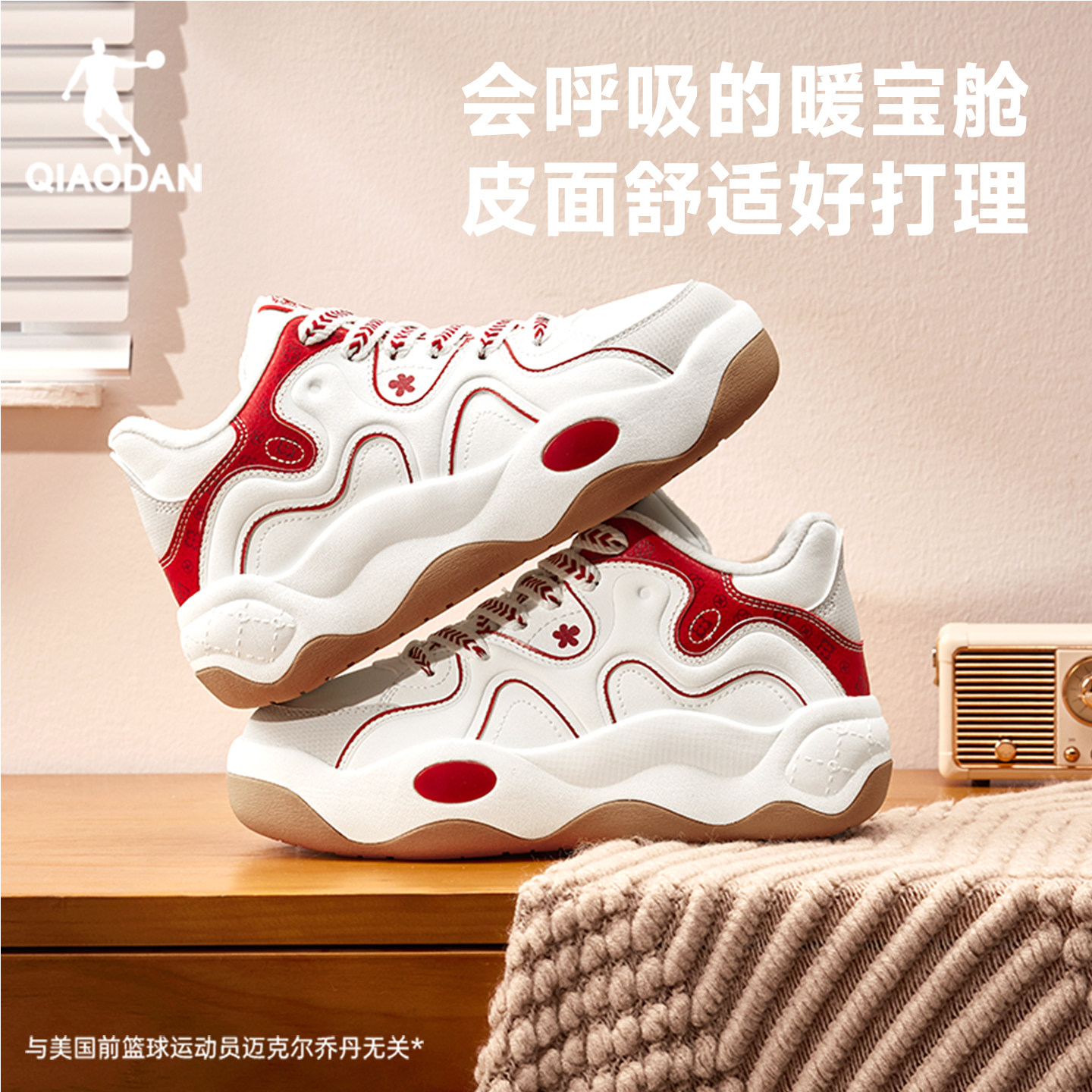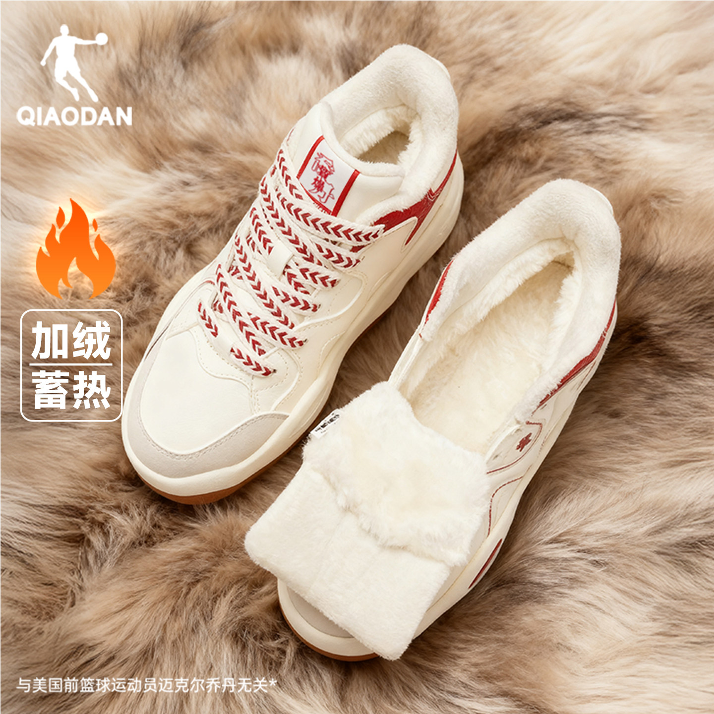 乔丹加绒防风棉鞋女防水红色保暖2025冬季新款运动增高休闲板鞋子