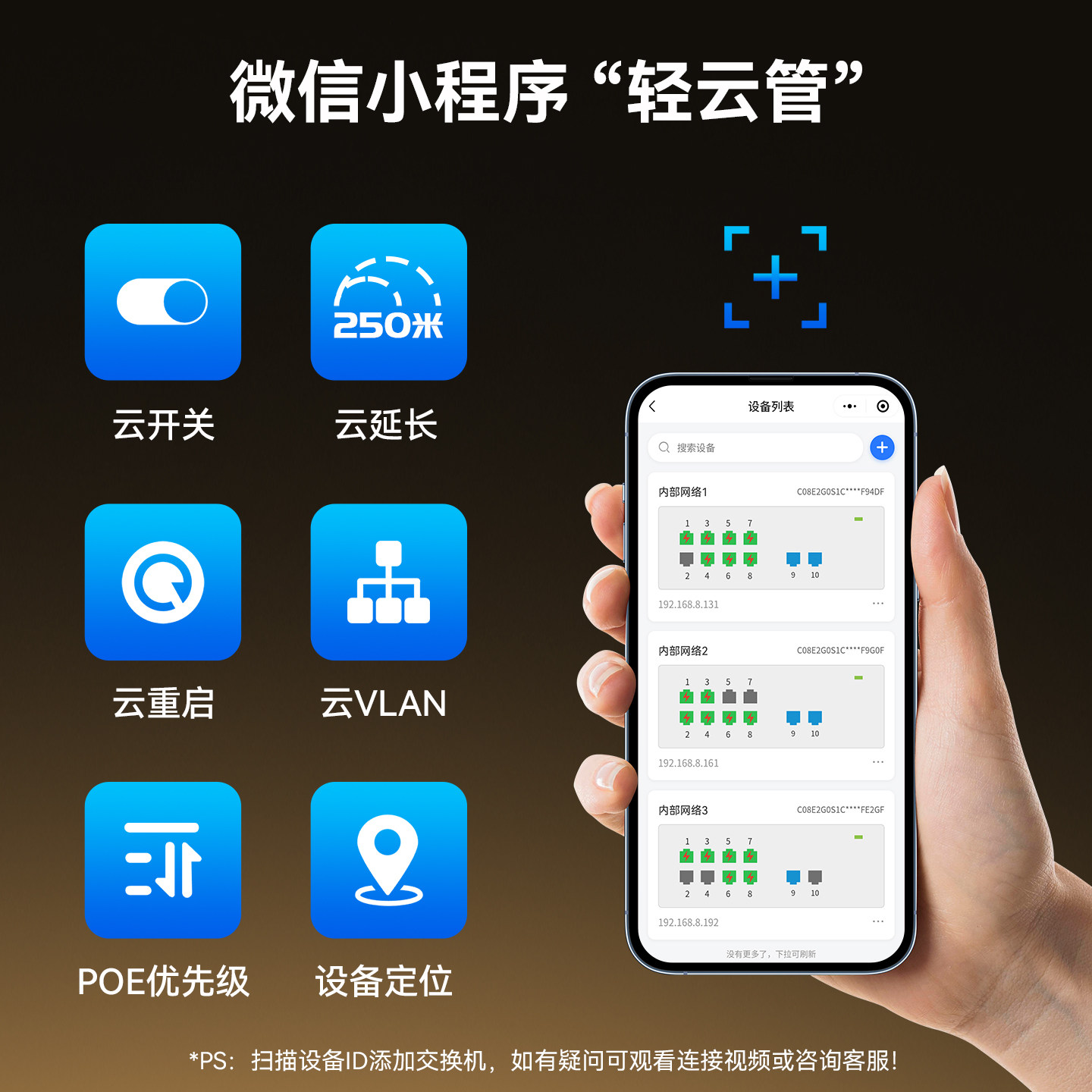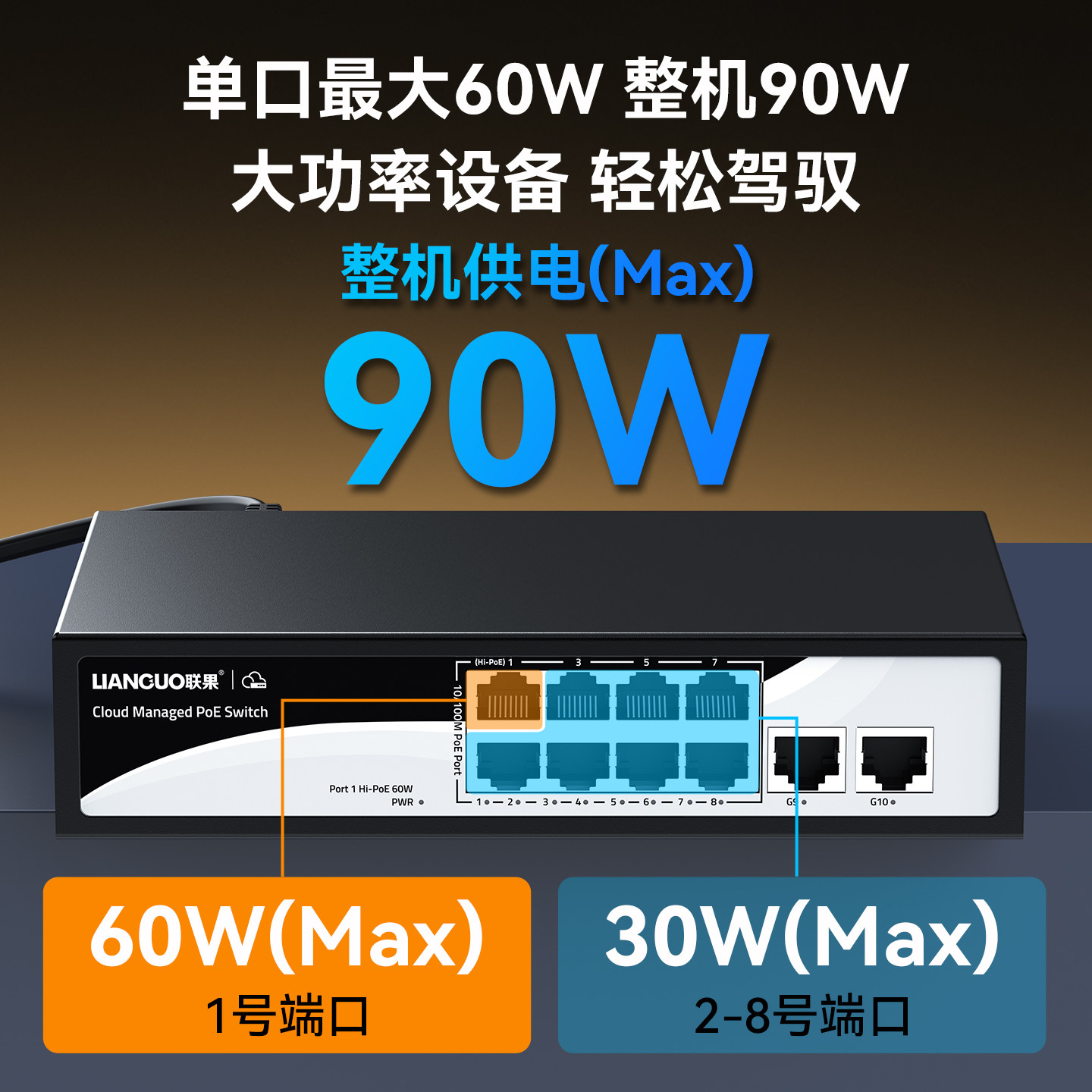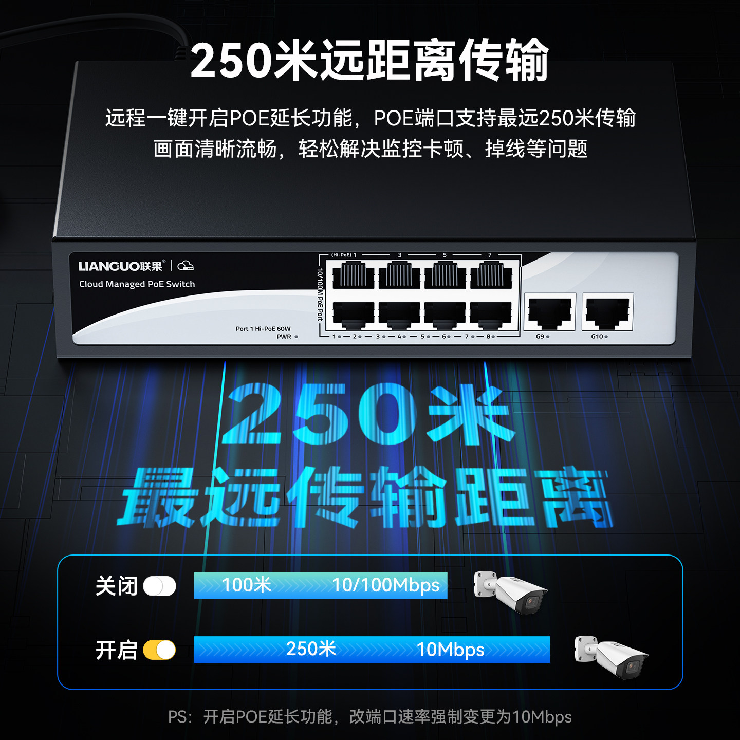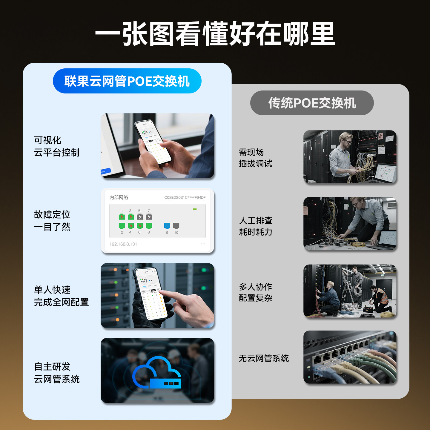 联果 云网管5/8/16/24口POE交换机千兆poe网线供电监控专用国标网络poe交换器百兆防雷 兼容海康水星tp摄像头