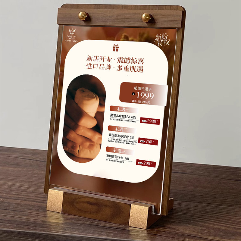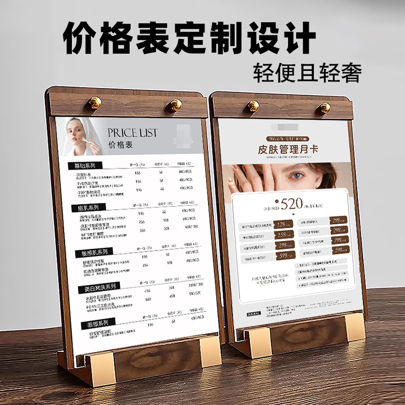 美容价格表定制美发沙龙发廊美甲美睫眉眼唇高端价目表展示牌桌牌亚克力胡桃木双面台卡台牌设计定制立牌广告