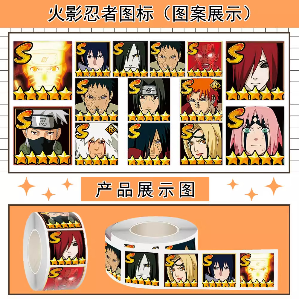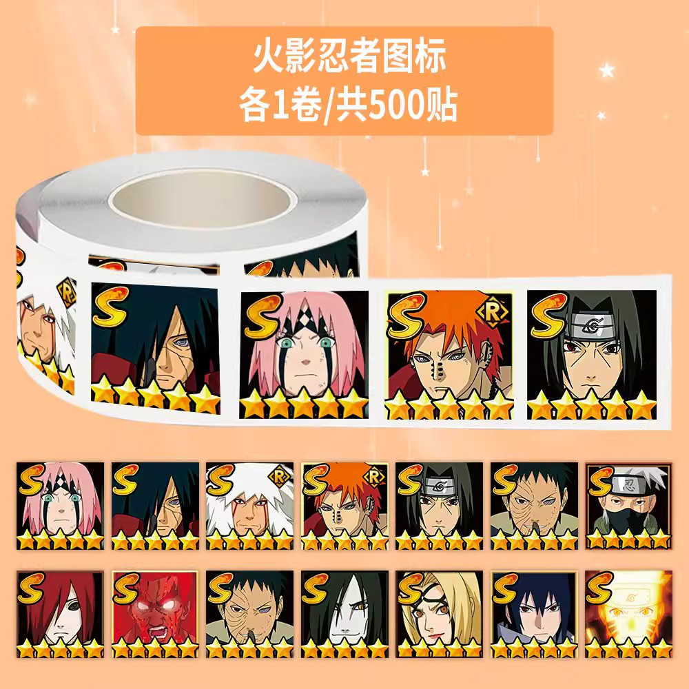 1500贴火影忍者图标卷卷贴热血动漫周边创意封口自粘装饰手账贴画