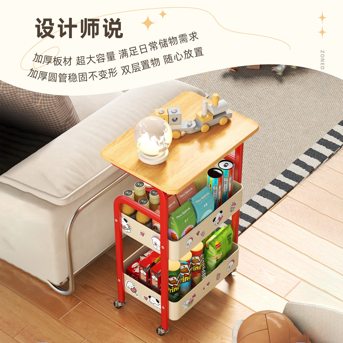 多巴胺小推车置物架客厅可移动沙发边几卧室床头柜边零食收纳架子