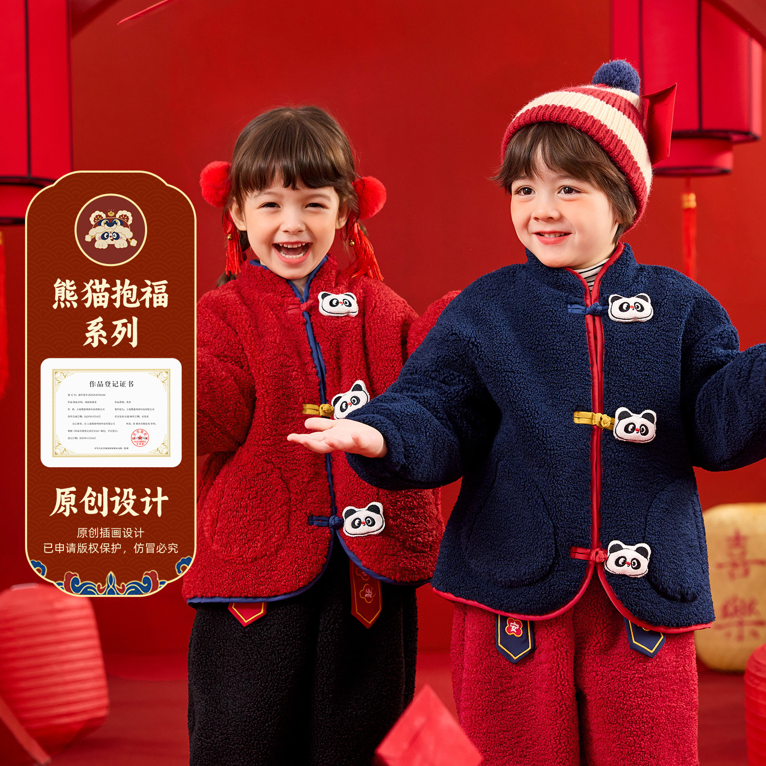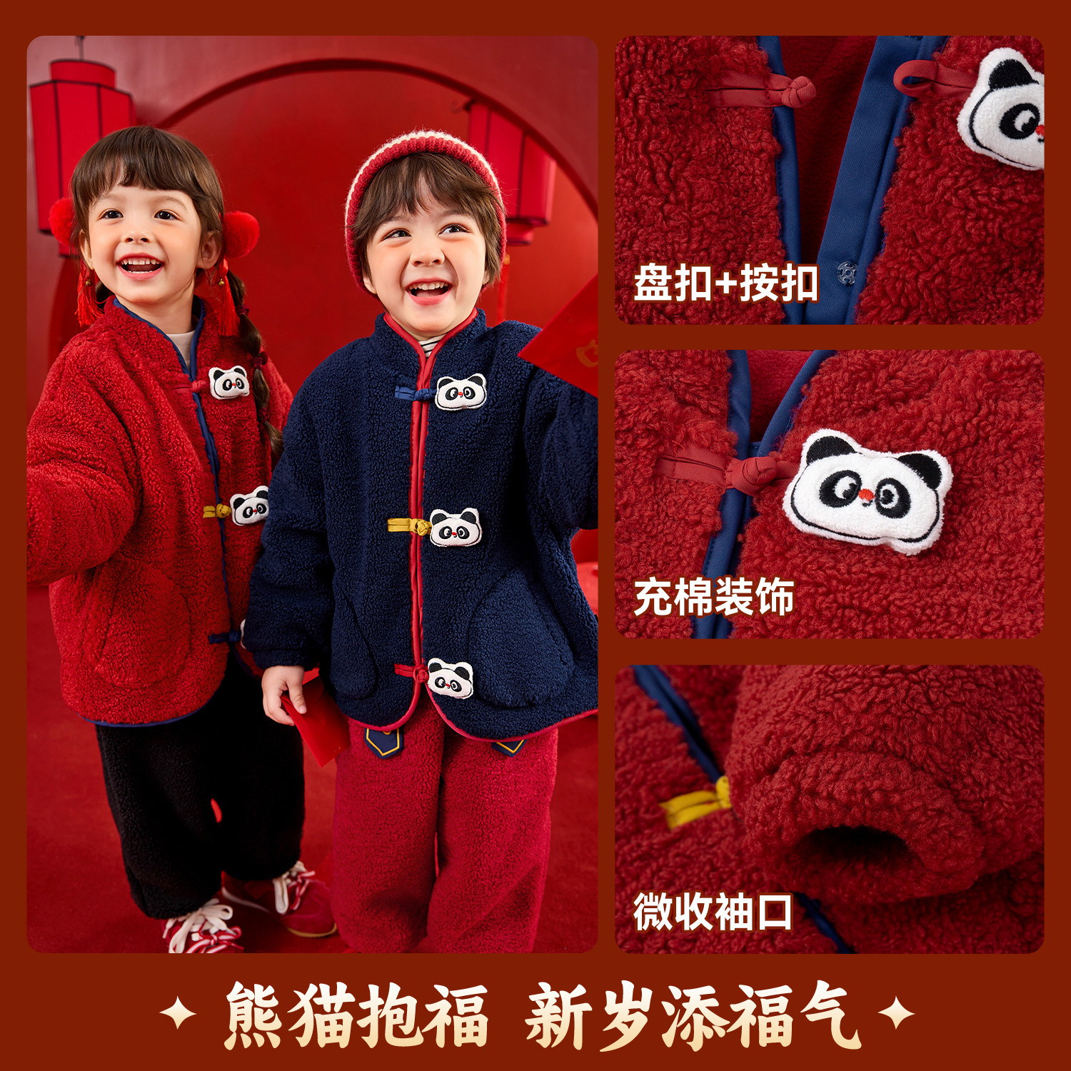 嘟嘟家儿童拜年服红色新年唐装男童外套宝宝新中式女童加厚冬上衣