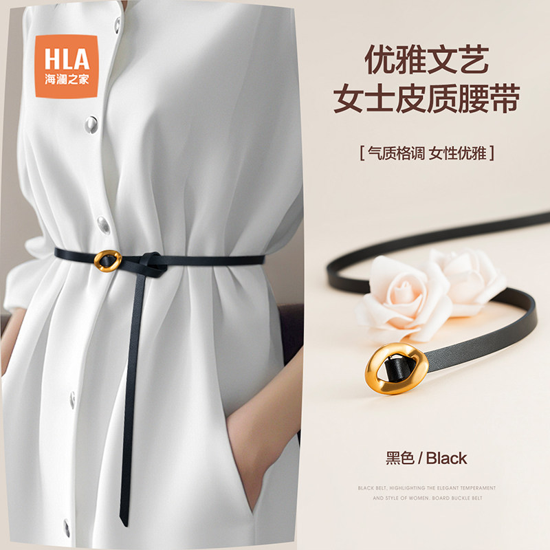 海澜之家皮带女士2025新款黑色细腰带简约装饰裤带柔软腰链配裙子