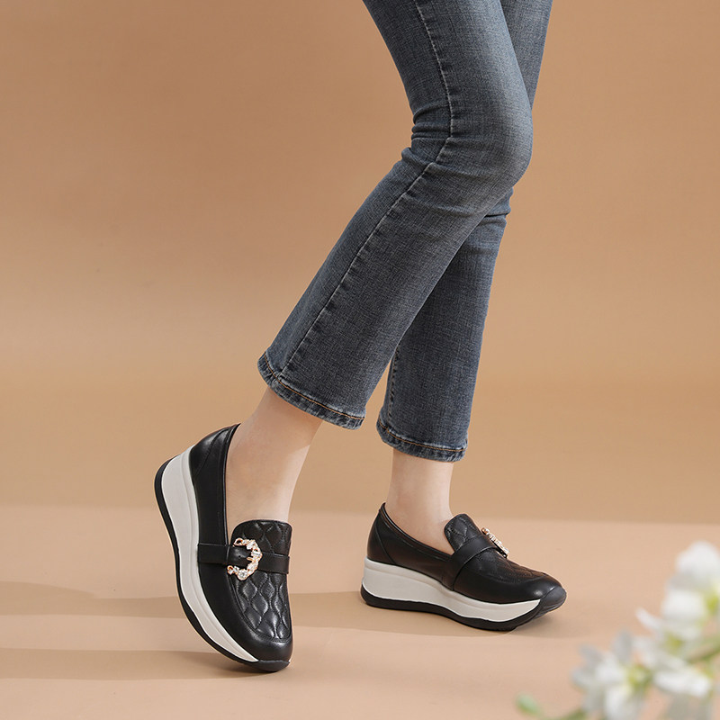 日泰头层牛皮女单鞋秋季厚底小皮鞋百搭通勤鞋妈妈软底真皮乐福鞋
