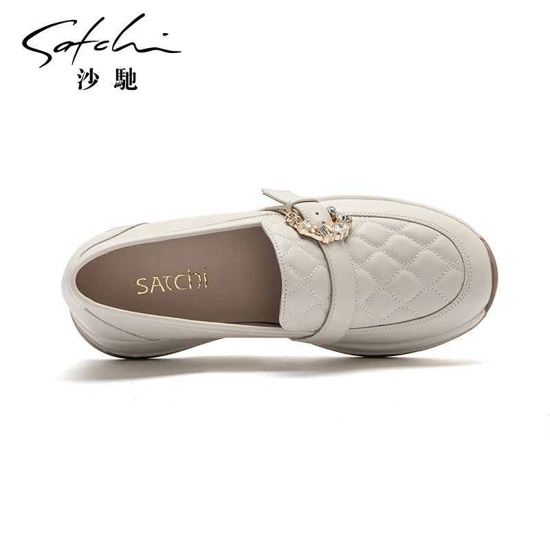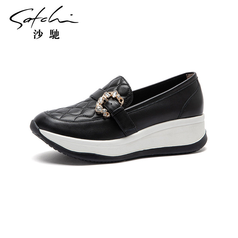 沙驰女鞋厚底乐福鞋一脚蹬懒人鞋女2026春新款妈妈通勤鞋深口鞋