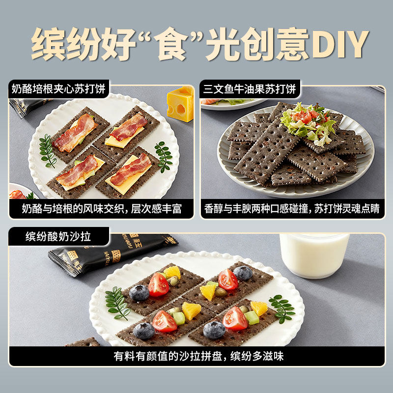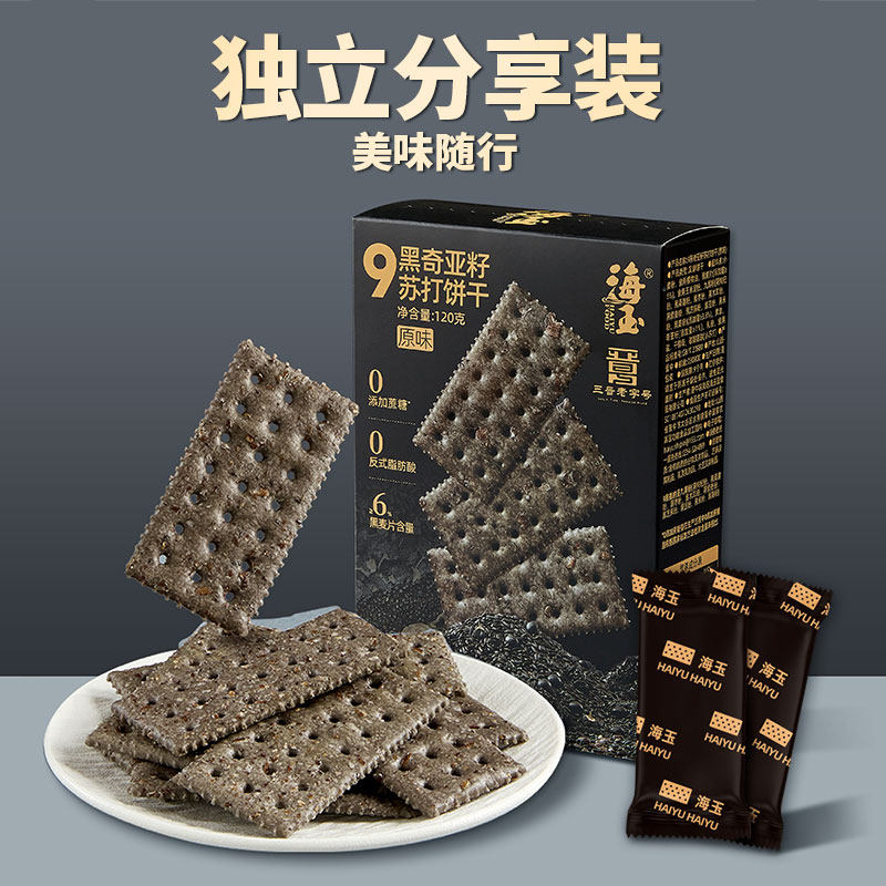 海玉九黑奇亚籽黑松露火腿苏打饼干130gx3盒零食健康谷物国货藜麦