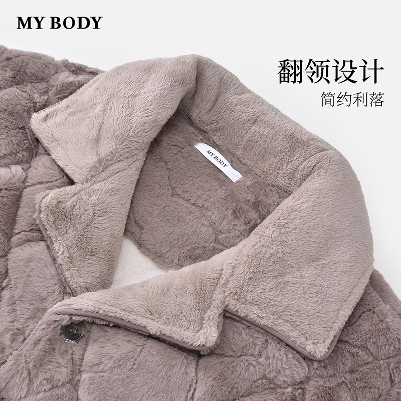 商场同款MYBODY冬季新款男士睡衣套装加厚三层夹棉可外穿的家居服