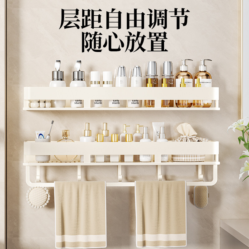 奶油风免打孔浴室置物架壁挂式厕所毛巾架卫浴洗漱台收纳架折叠