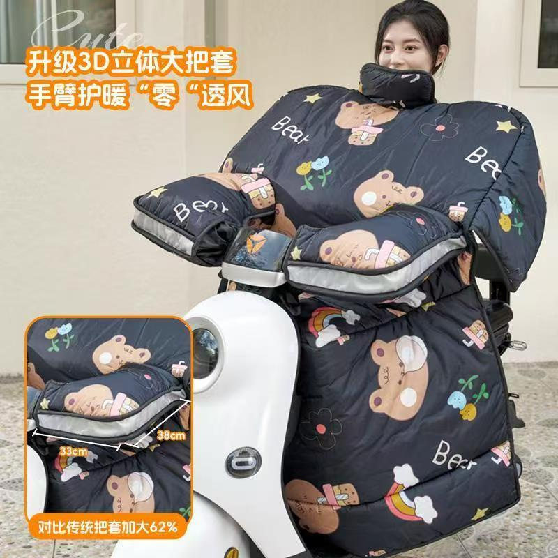 冬季电动车挡风被加绒加厚护肩防风防水加大电瓶车四季通用摩托