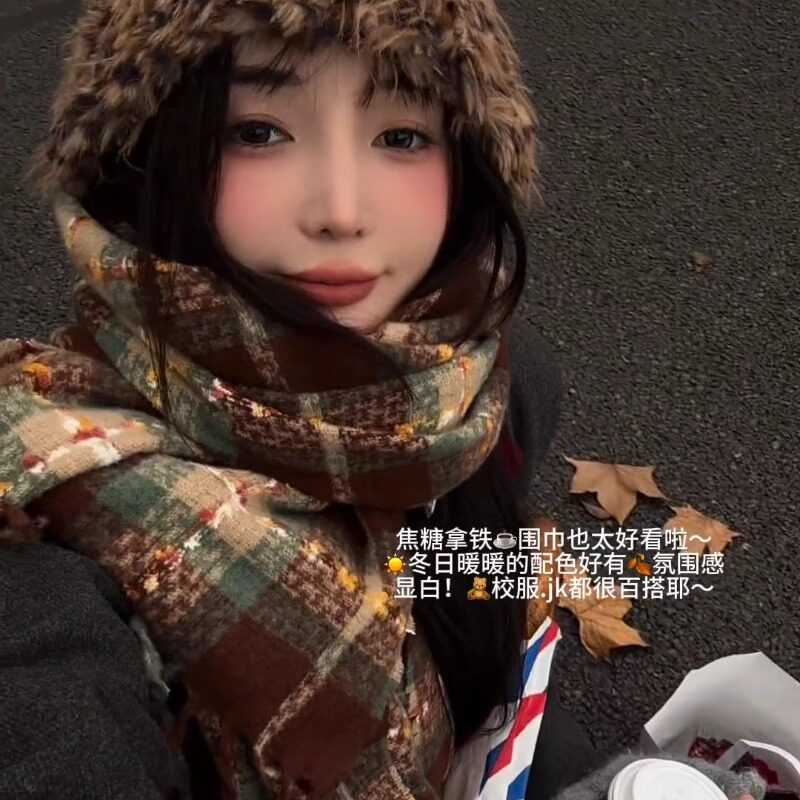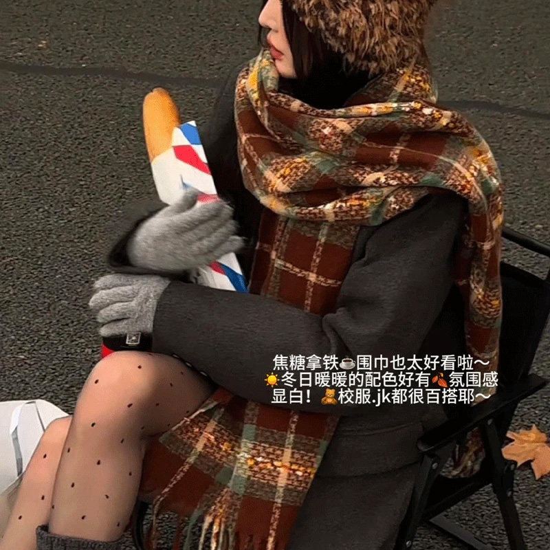 咖啡围巾女感保暖流苏围脖韩系加厚情侣披肩冬季氛围显白焦糖冬日