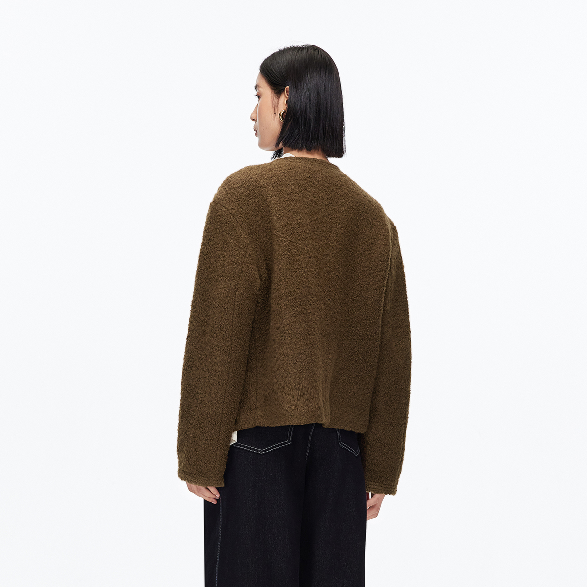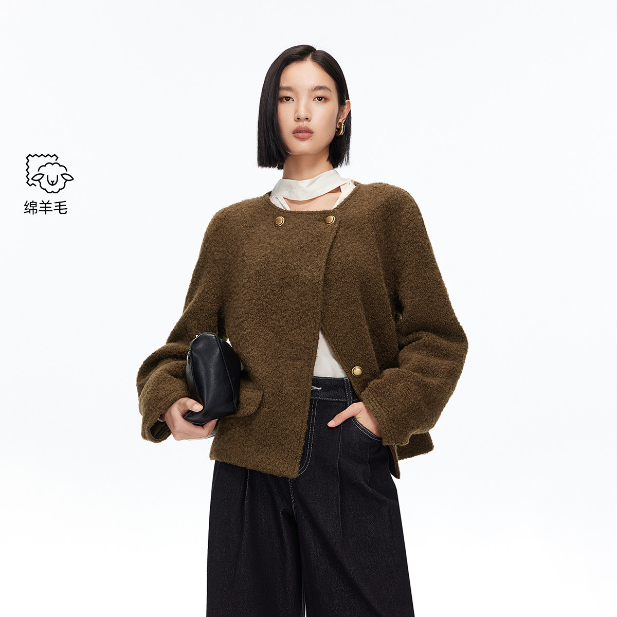 RUISHI芮时 “雪国印象”100绵羊毛颗粒绒大衣毛绒毛呢外套女冬