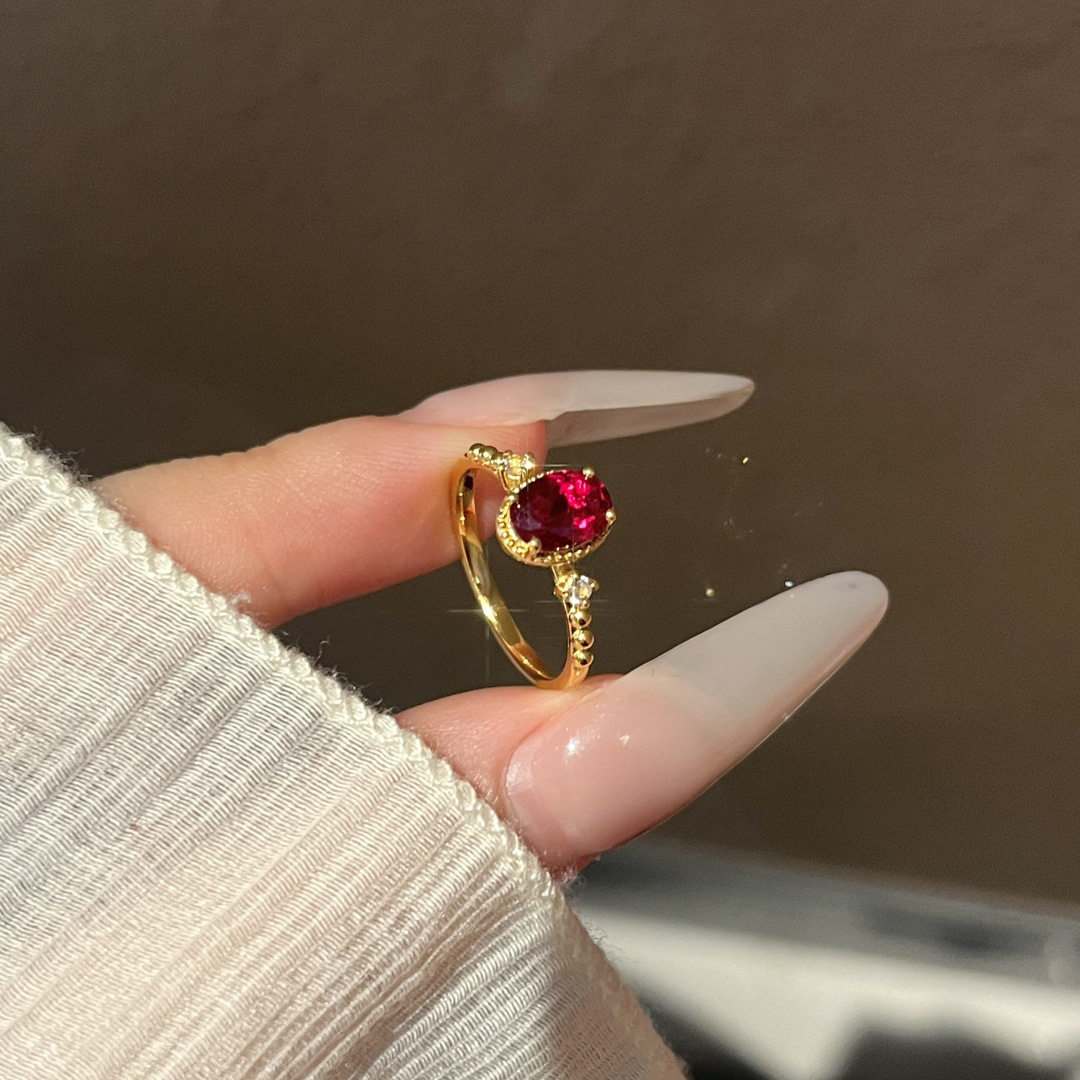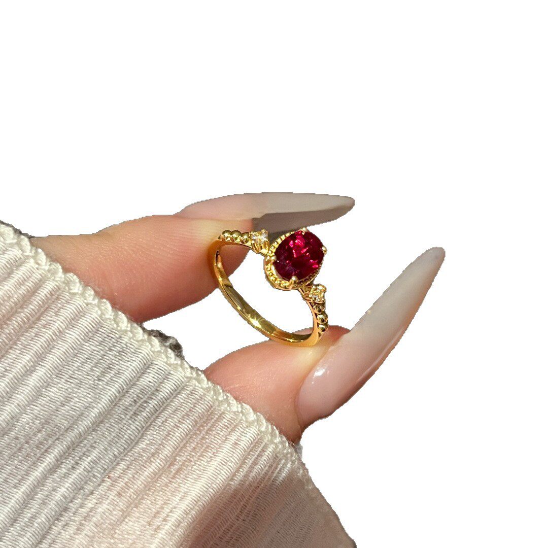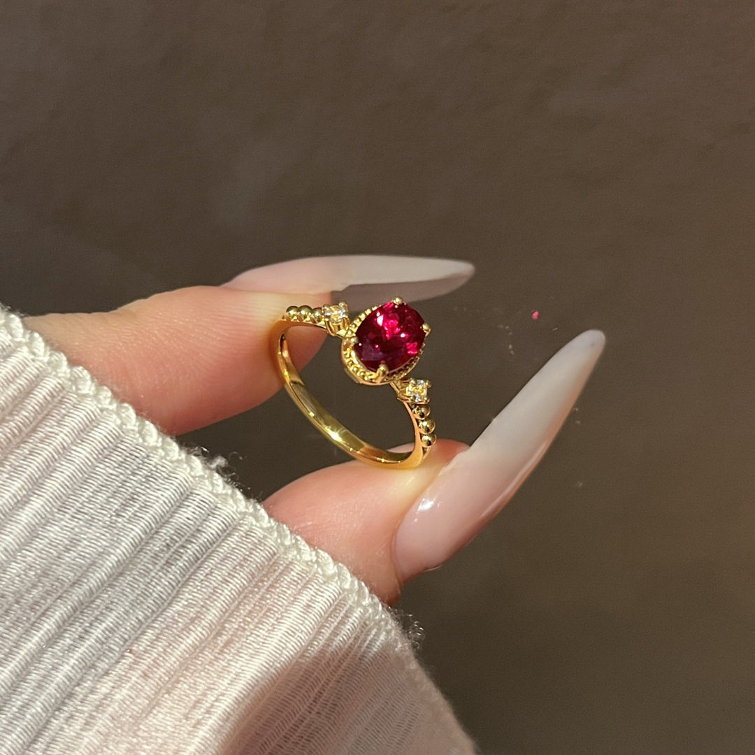 小红书同款复古宫廷风蛋面戒指女小众时尚轻奢镶嵌锆石高级感手饰