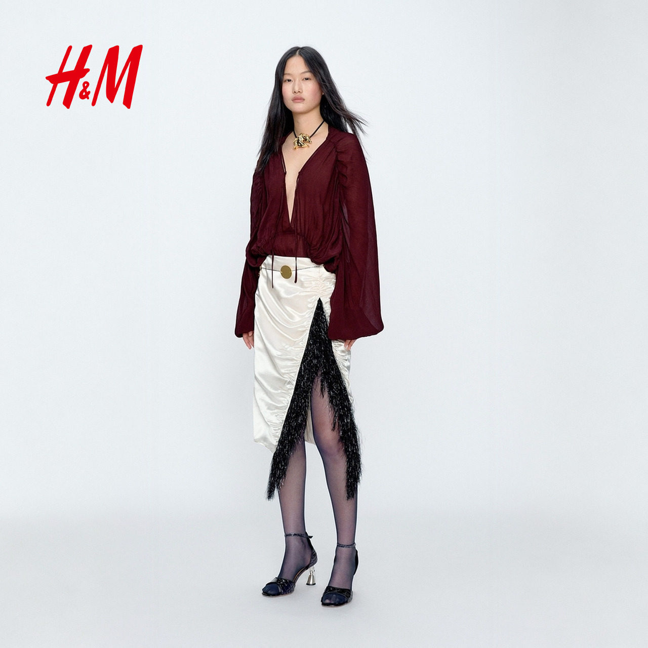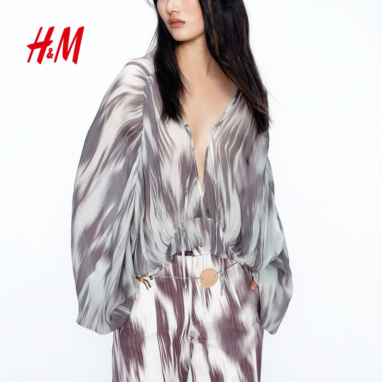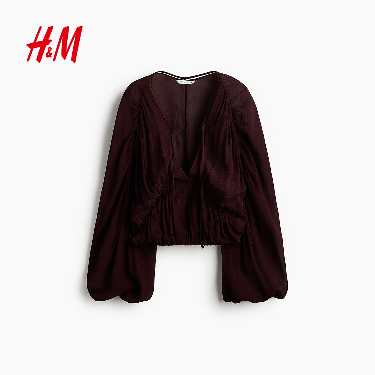 JACQUES WEI H&M女装衬衫2026春季新款红色灯笼袖雪纺上衣1320576