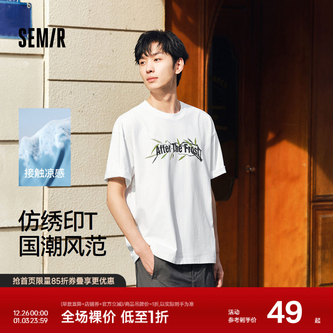 森马短袖T恤男中国风竹叶印花上衣凉感2025新款夏装宽松针织内搭