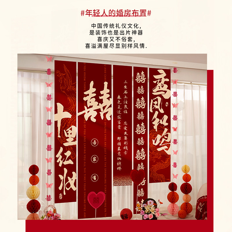 结婚挂布条幅喜字订婚礼用品布置男女客厅婚房装饰晨袍拍照背景墙