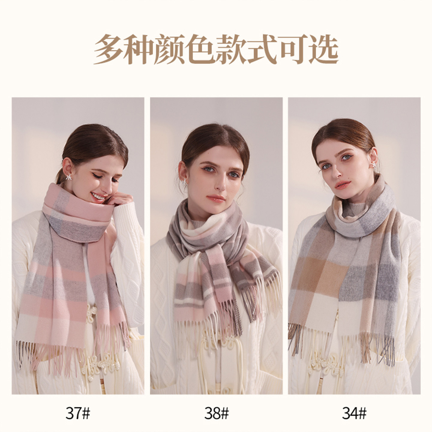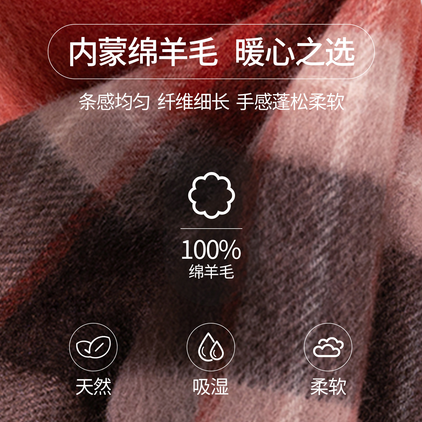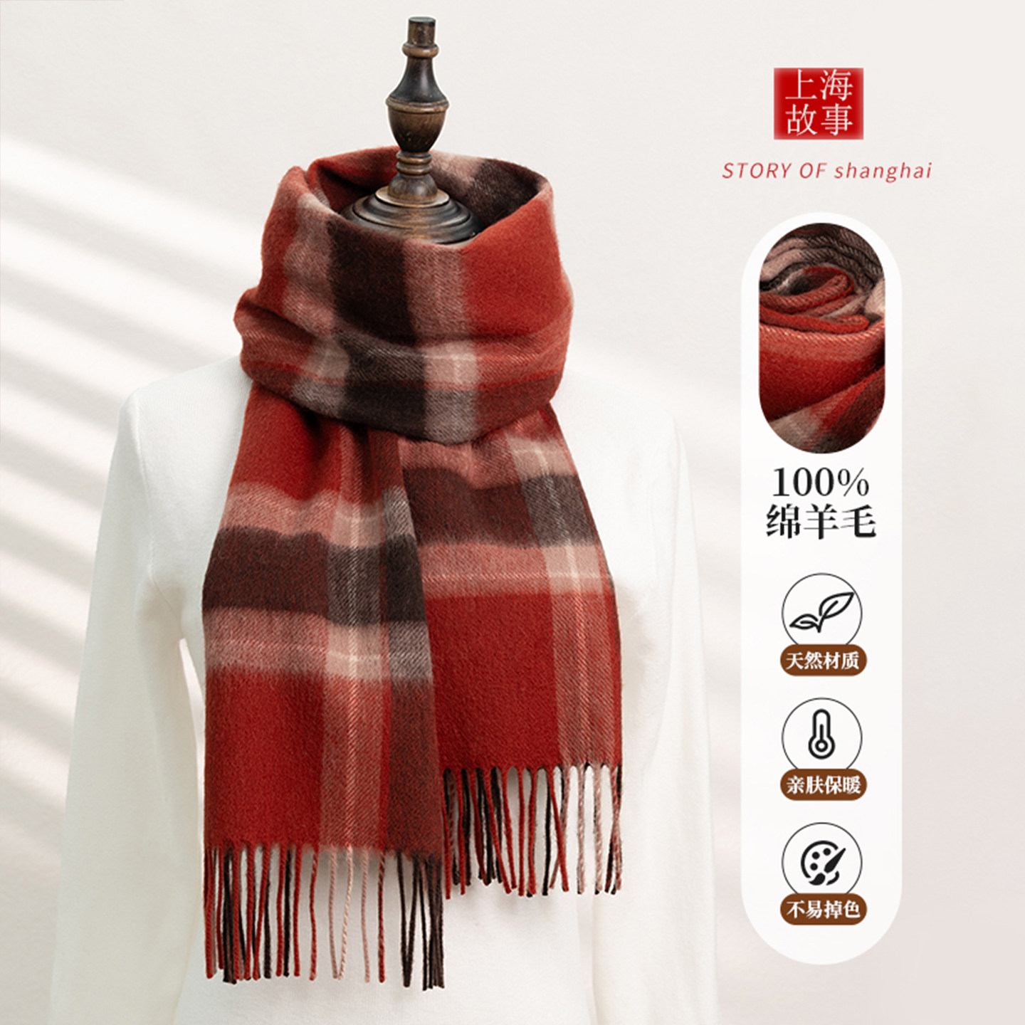 上海故事格子羊毛围巾女2025秋冬新款保暖百搭羊绒围脖节日礼物