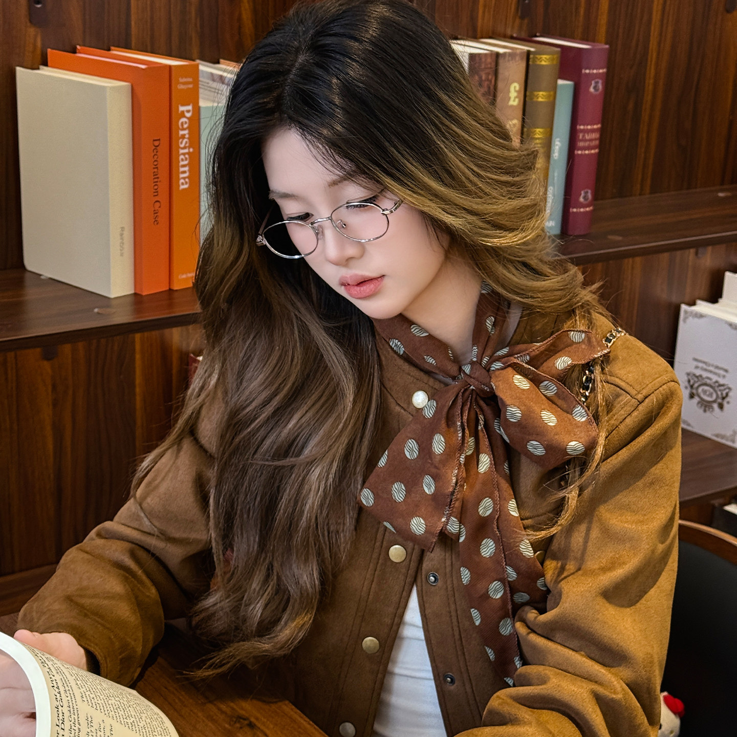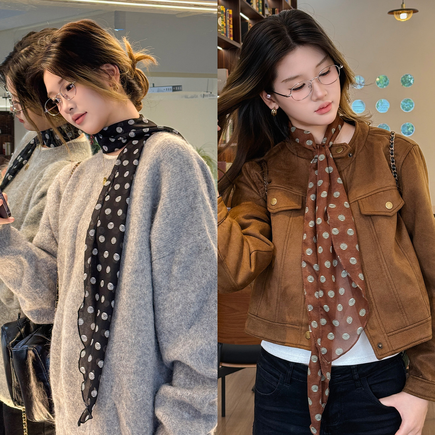 棕色波点丝巾印花高级百搭配饰系脖女2025年新款发带绑发长条围巾