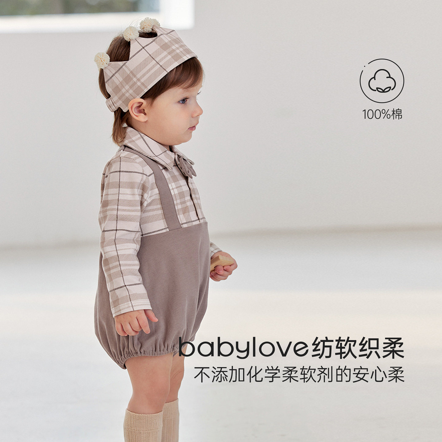 babylove【安心柔】婴儿包屁衣春秋纯棉男宝宝假两件小绅士哈衣