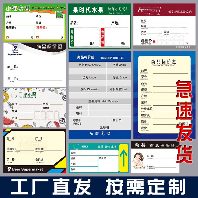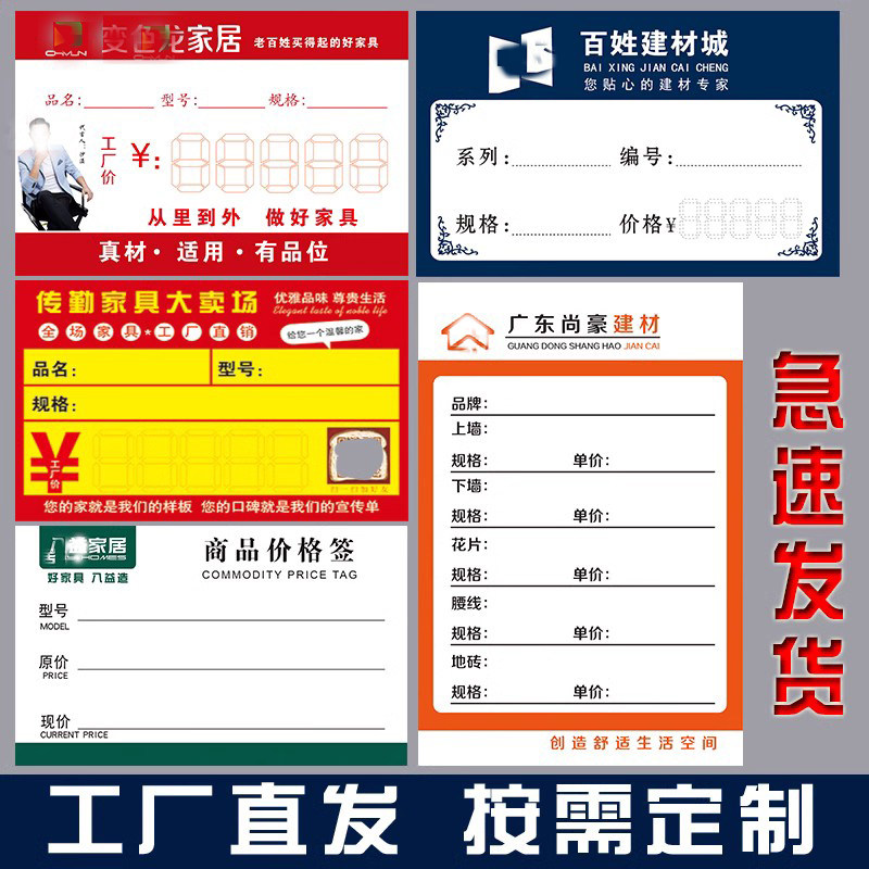 标价签定做家居电器建材卫浴装饰食品卡纸商品标签价格牌标签定制