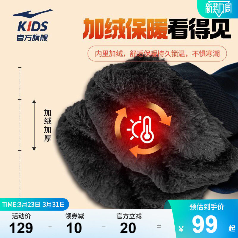 鸿星尔克童装儿童加绒裤秋冬季加厚保暖棉裤新年男童防水运动裤子