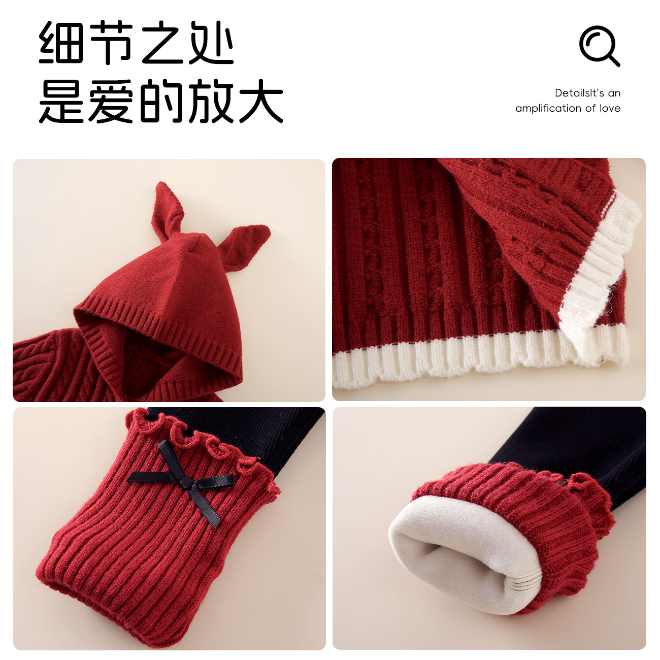 Ms.Puala女童套装女宝宝针织毛衣年服新年红蝴蝶结加绒打底裤套装