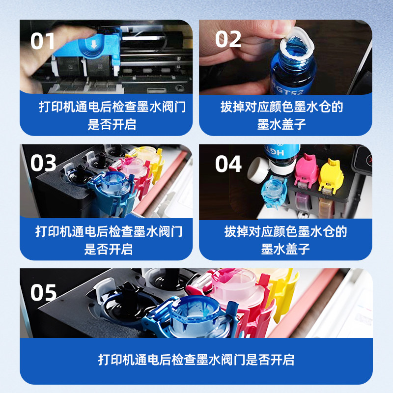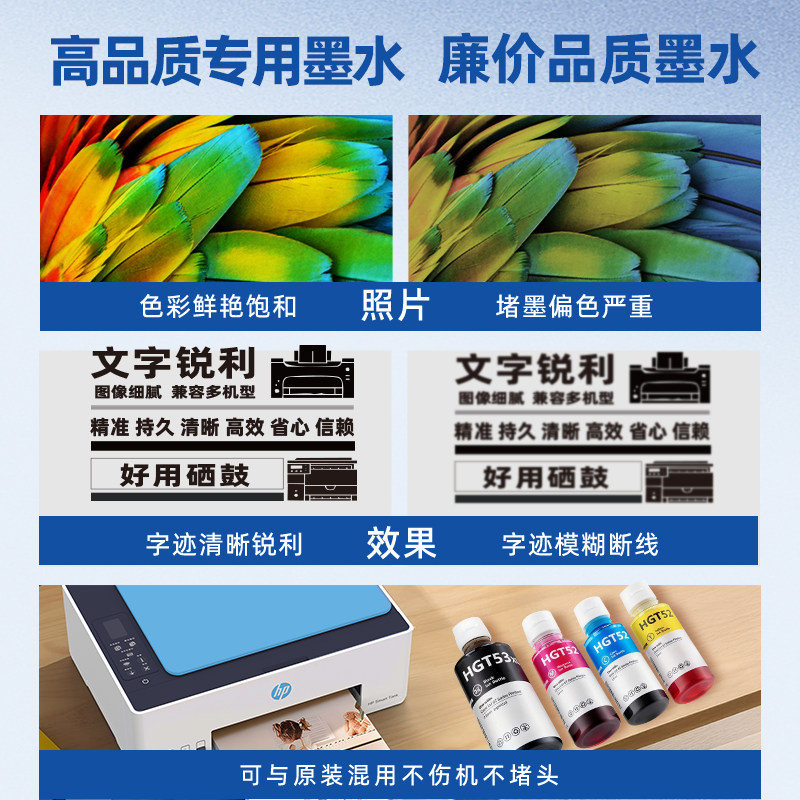 HP惠普墨仓式连供打印机通用墨水黑色GT53XL彩色gt52tank519 593 510 592 596 599 672 5820打印机专用非原装
