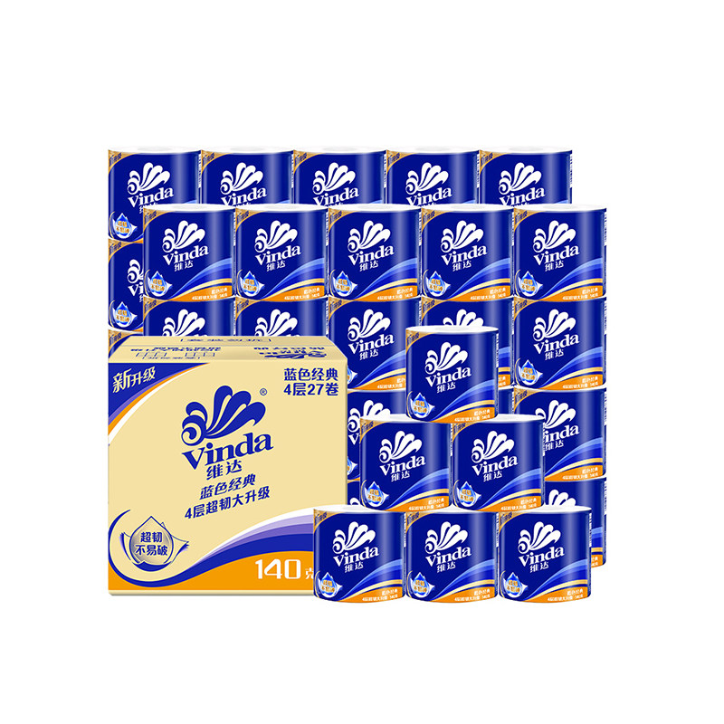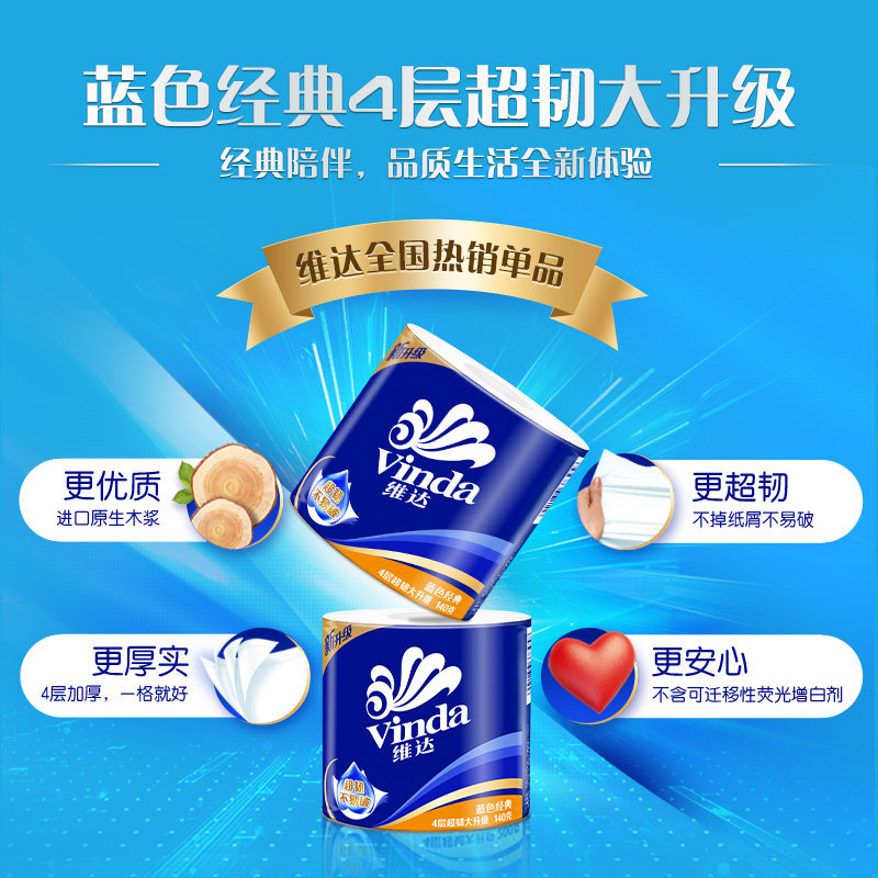 【孙颖莎推荐】维达卷纸蓝色经典卫生纸巾四层家庭装有芯卷纸厕所