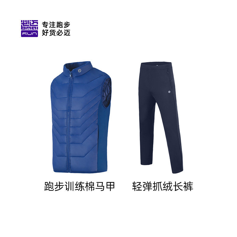 必迈运动保暖套装男女【训练棉马甲+抓绒长裤】户外跑步套装