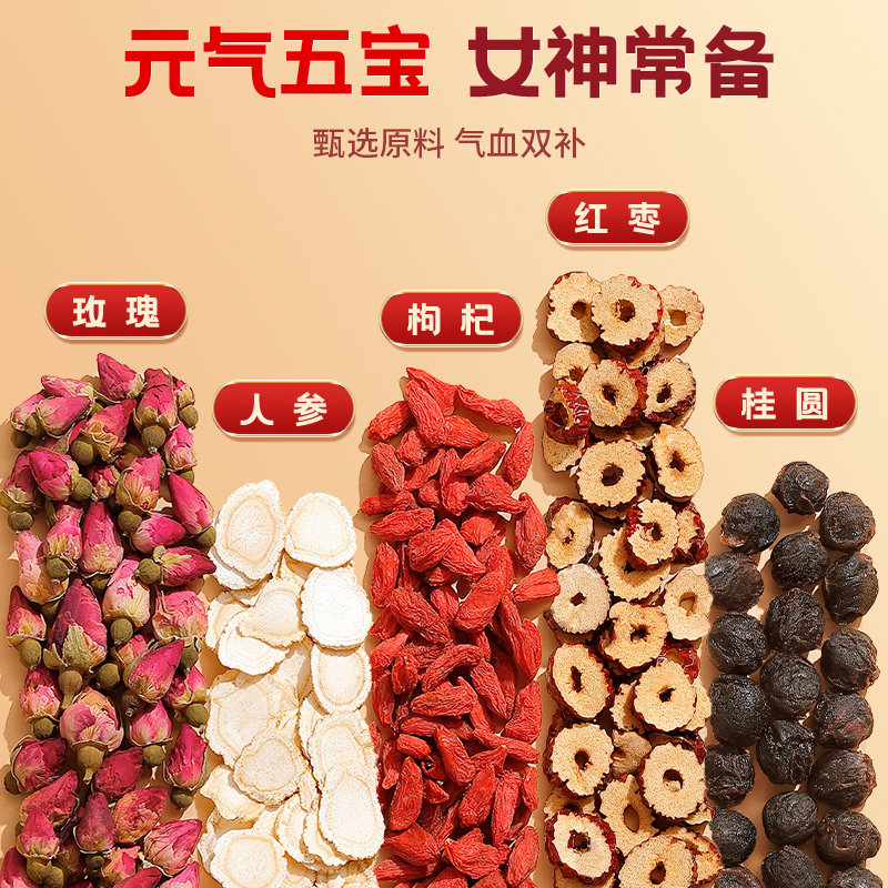 红枣桂圆枸杞茶人参双补气养血调理女人气血不足玫瑰花养生茶睡眠