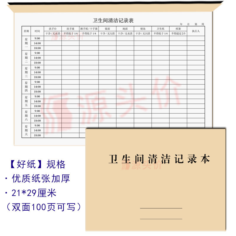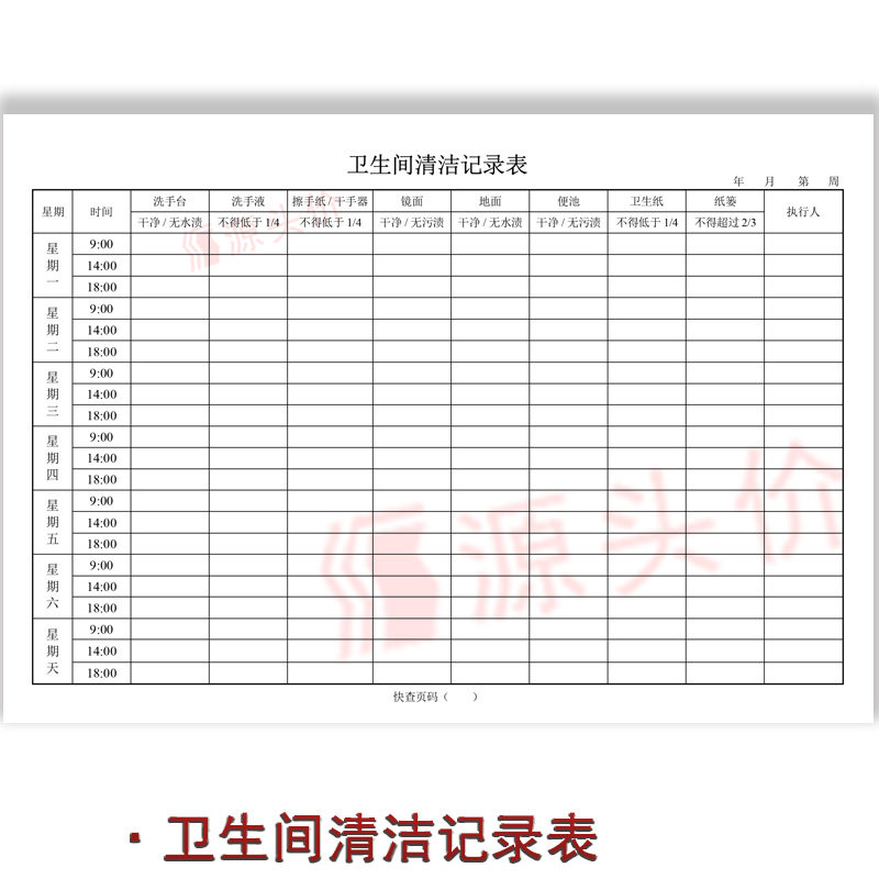 卫生间清洁记录表厕所清洁洗手台地面保洁医院医疗公共场所卫生本
